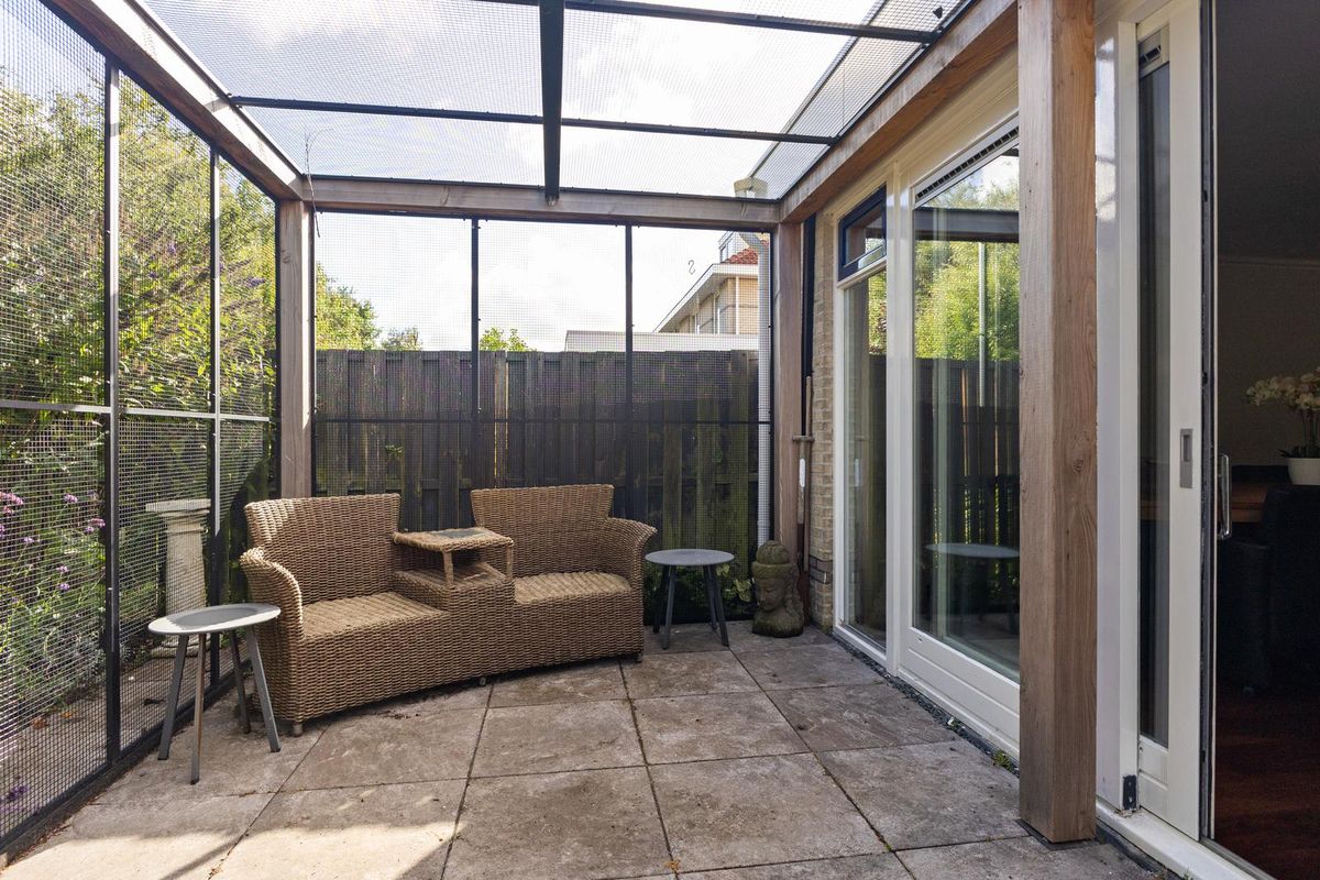 De achtertuin is recent opnieuw aangelegd en biedt een heerlijke plek om te ontspannen. Je geniet van veel privacy, want er zijn geen aangrenzende achterburen. Aan de achtergevel is een kattenren geplaatst.