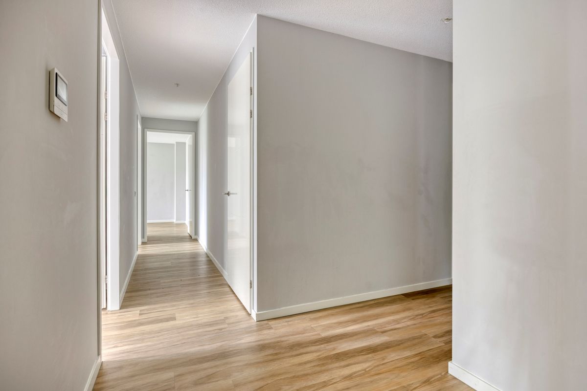 De hal binnen het appartement biedt een praktische indeling en leidt naar alle vertrekken. Het appartement zelf heeft een riante oppervlakte van circa 130 m², met grote ramen die zorgen voor een overvloed aan natuurlijk licht, wat de kamers een lichte en open uitstraling geeft.