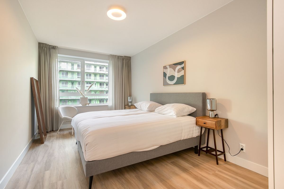 De master bedroom biedt een tweepersoonsbed en een ruime kast, terwijl de tweede slaapkamer zich uitstekend leent als studeerkamer of werkkamer. De badkamer beschikt over een inloopdouche en wastafel, en het appartement heeft daarnaast een apart toilet voor extra gemak.