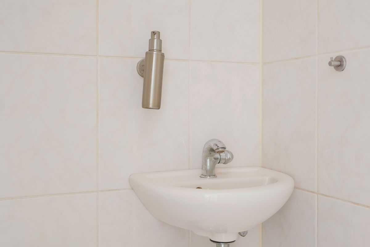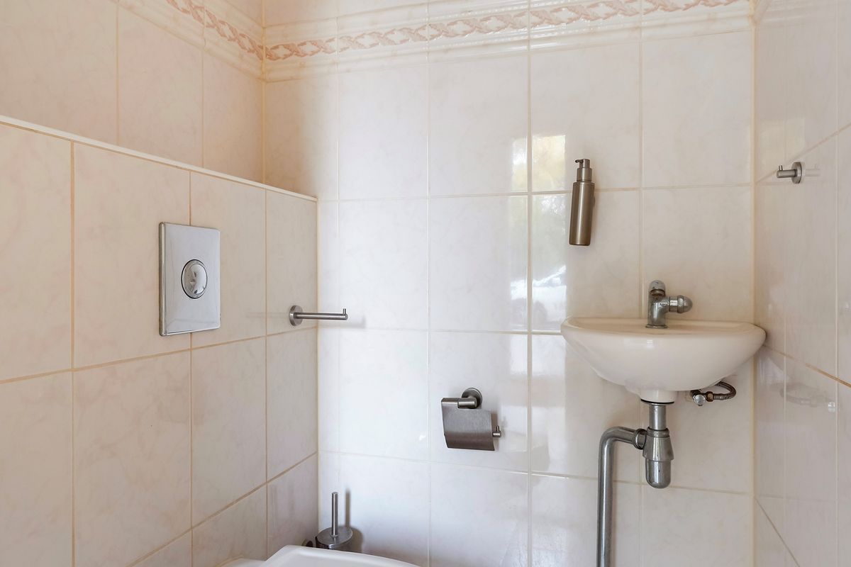 - Badkamer: eenvoudige badkamer met ligbad, wast-meubel, douche, ribbenradiator