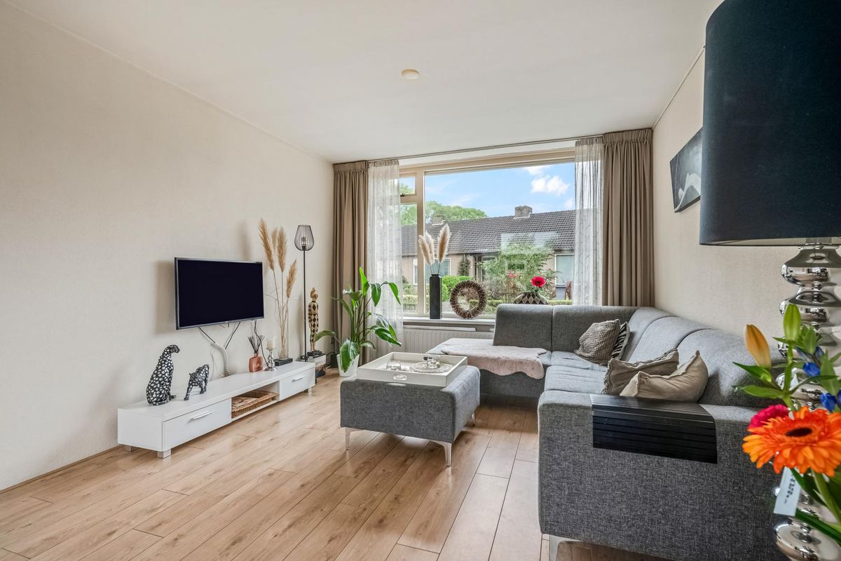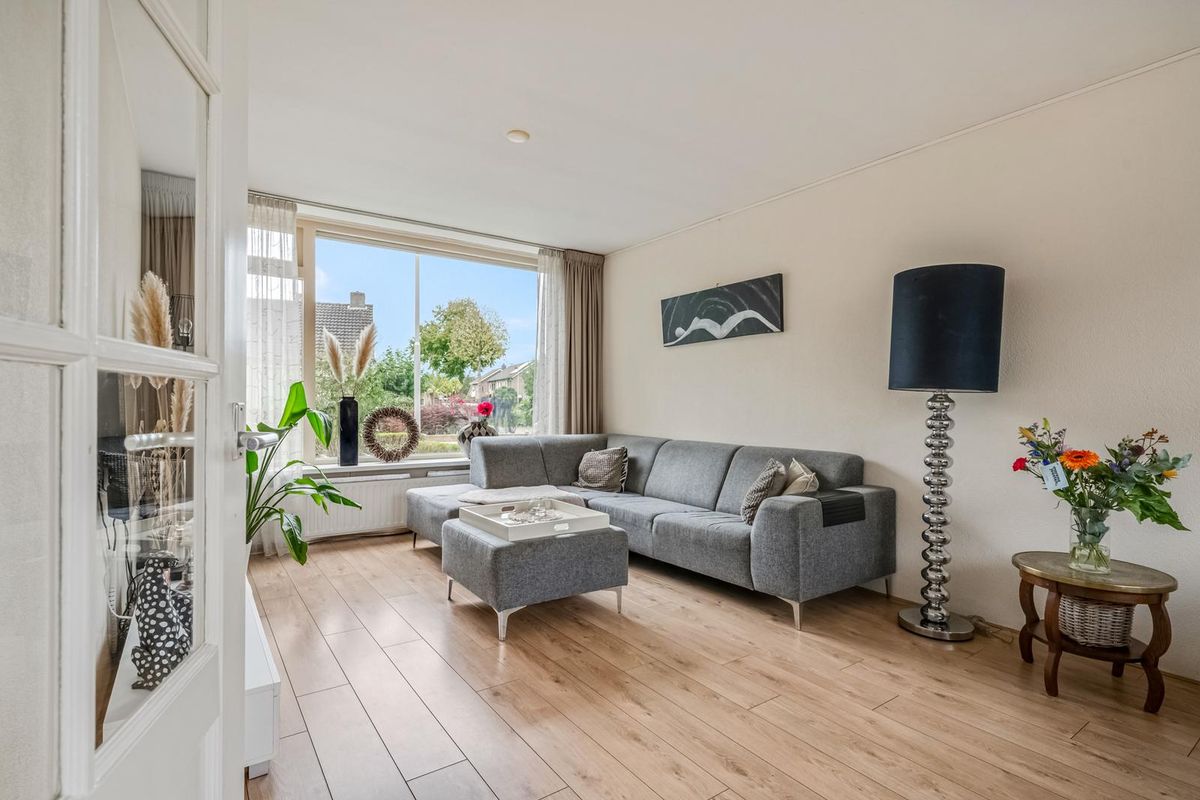 Beneden stap je een lichte en open woonkamer binnen. Grote ramen aan de voorzijde vangen de zon, terwijl de houten vloer en neutrale kleuren zorgen voor een warme, gezellige sfeer. De open verbinding met de eethoek maakt dit de ideale plek om samen te zijn – of je nu gasten ontvangt of lekker op de bank ploft na een lange dag.