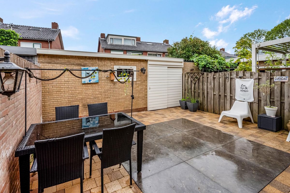 De achtertuin is volledig bestraat: strak, overzichtelijk en met minimale onderhoudswerkzaamheden. Precies wat je nodig hebt als je liever ontspant dan schoffelt. Dankzij de houten schutting geniet je hier in alle privacy van een kop koffie in de ochtendzon of een gezellige borrel aan het einde van de dag. De vrijstaande stenen berging biedt ruimte genoeg voor fietsen, tuinspullen of die extra voorraadkast die je altijd al wilde.