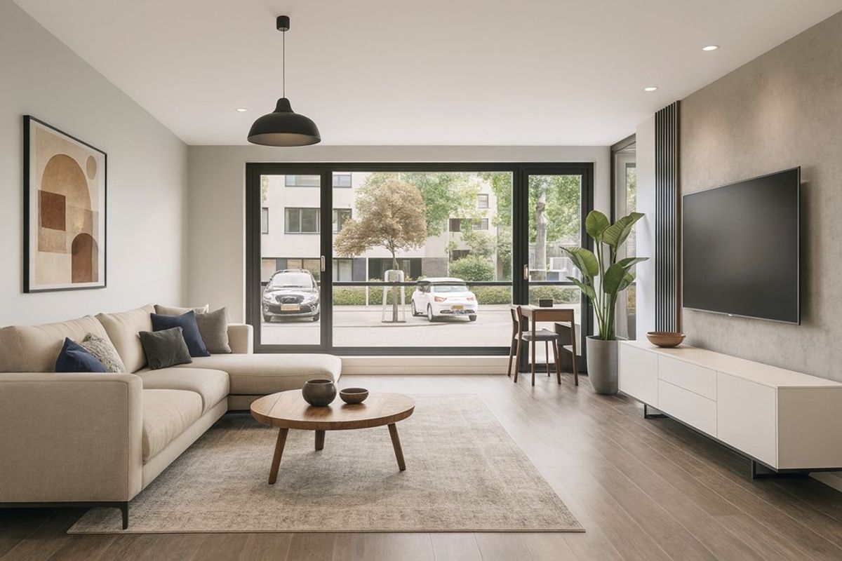 Bekijk de Virtual Tour op onze website waarmee u digitaal al een rondje door het appartement, de berging en een gedeelte van de tuin kunt doen.