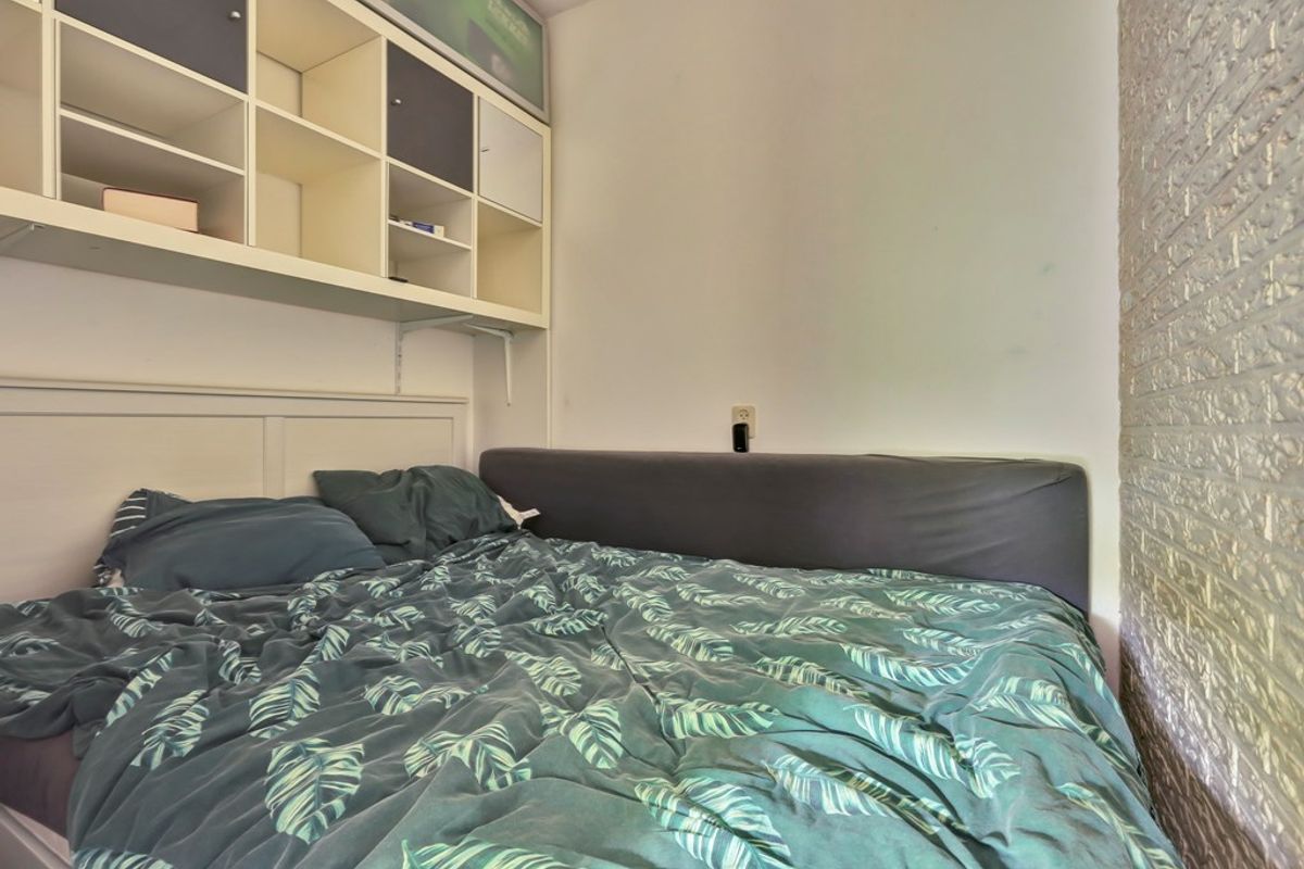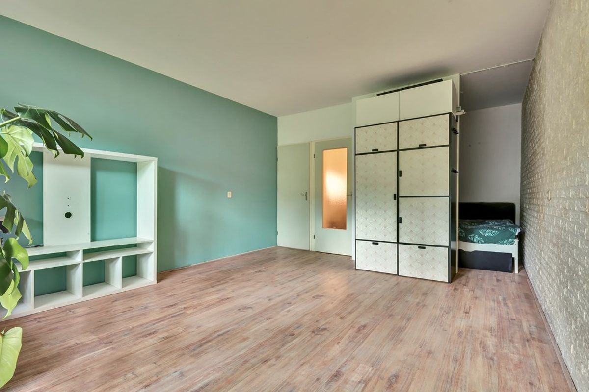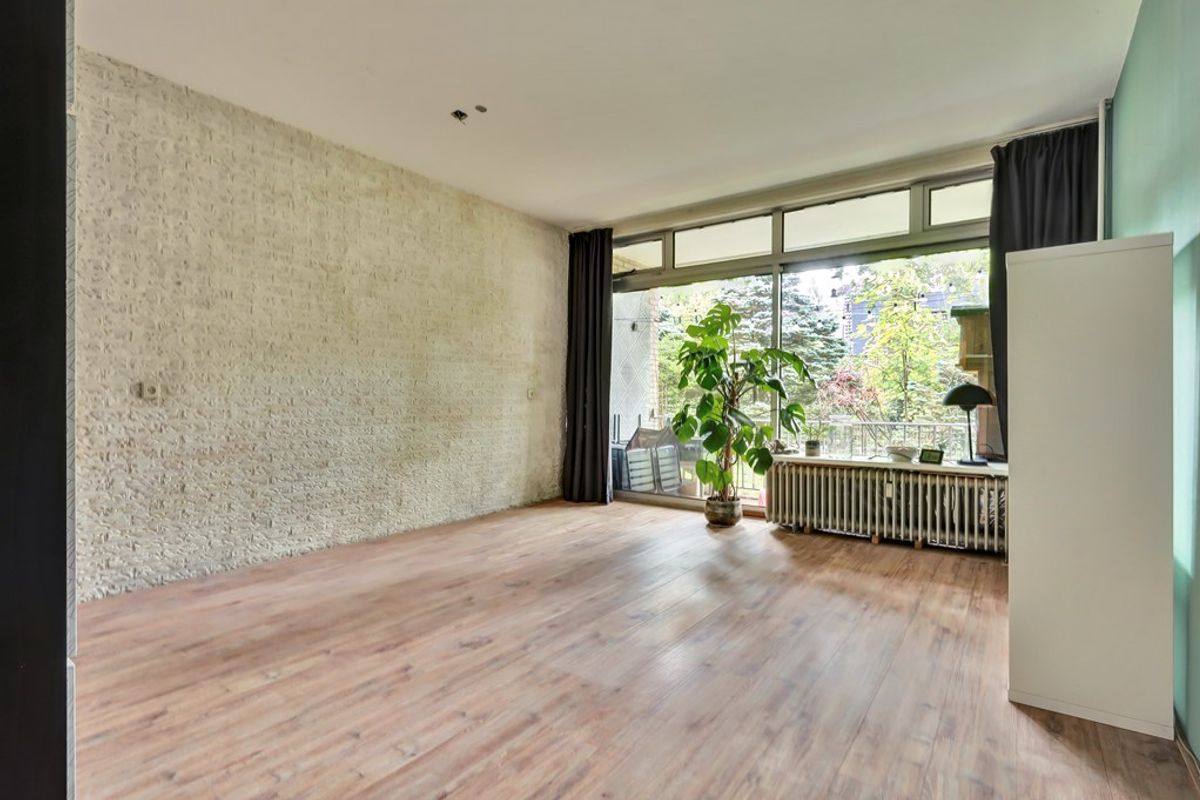 De lichte woonkamer (ca. 19 m2) is een heerlijke plek om te ontspannen, met grote ramen en een schuifpui naar het (overdekte) balkon waar je lekker buiten kunt zitten met uitzicht op het groen. Vanuit de woonkamer bereik je de slaapkamer (1,94 x 2,11 m) en een vaste kast biedt extra opbergruimte.