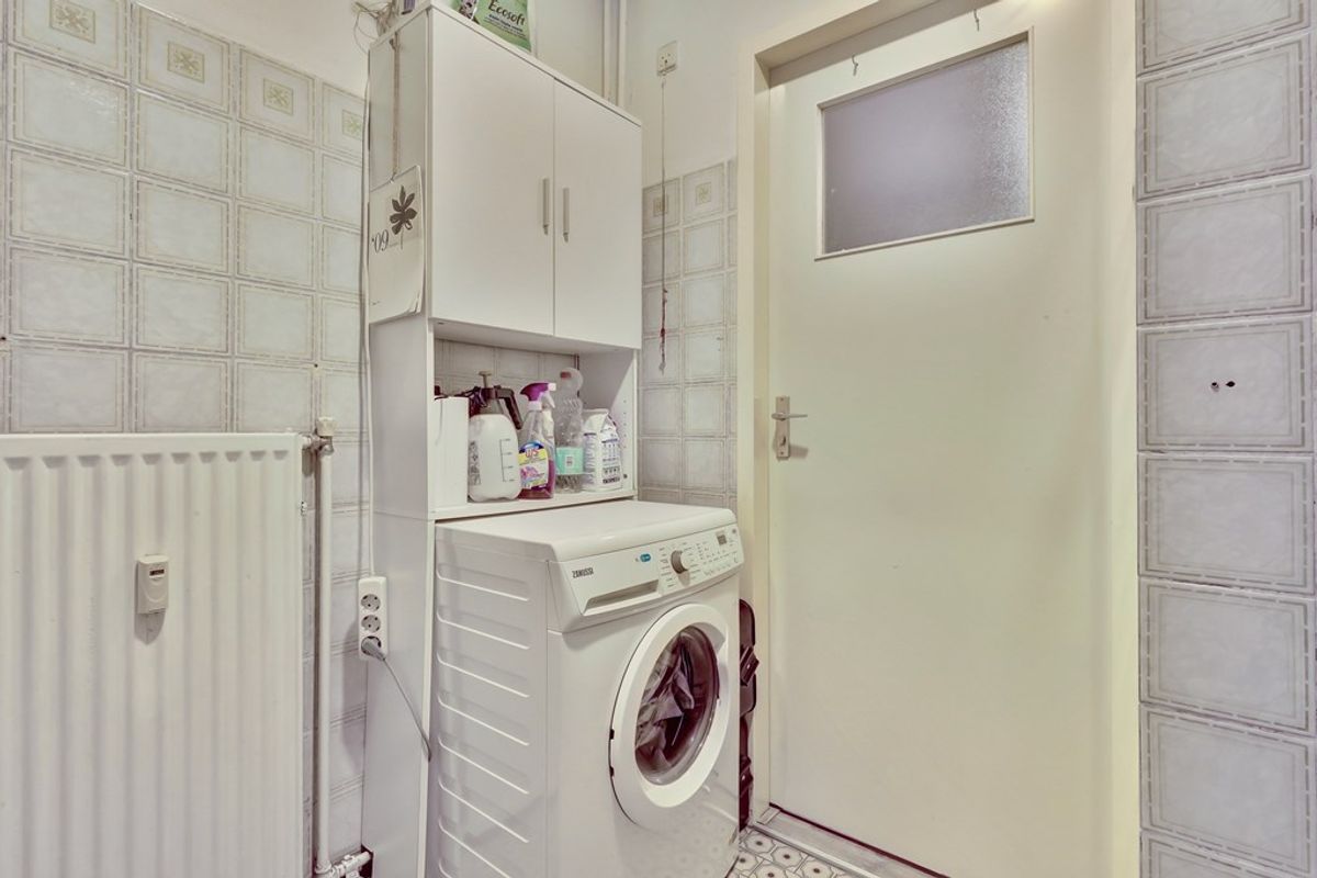Vanuit de keuken loop je door naar de badkamer met een bad/douchecombinatie, wastafel, toilet, mechanische ventilatie, radiator en aansluiting voor de wasmachine.