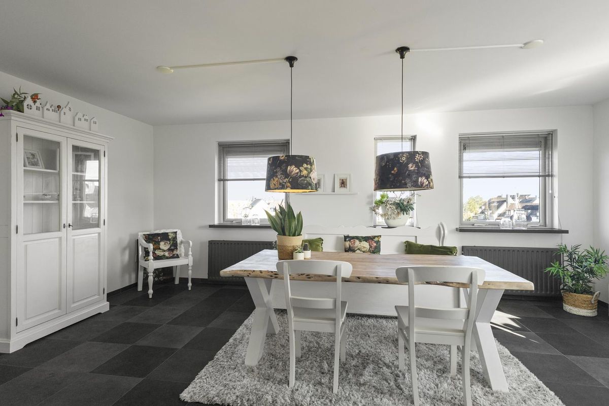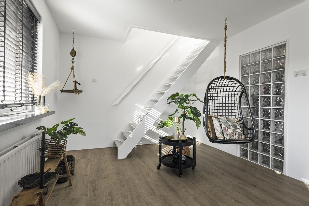 Hier ruimte voor de woonkamer of natuurlijk de eetkamer. Trap naar de verdieping.