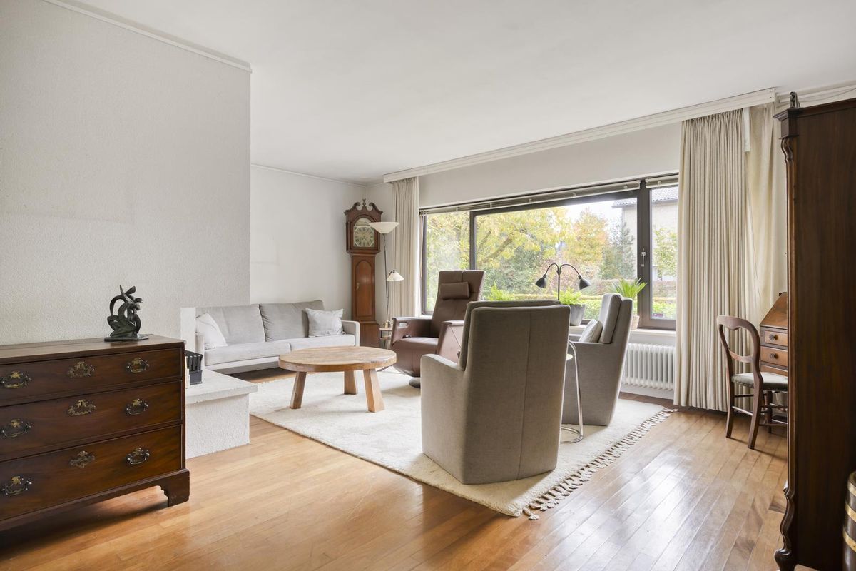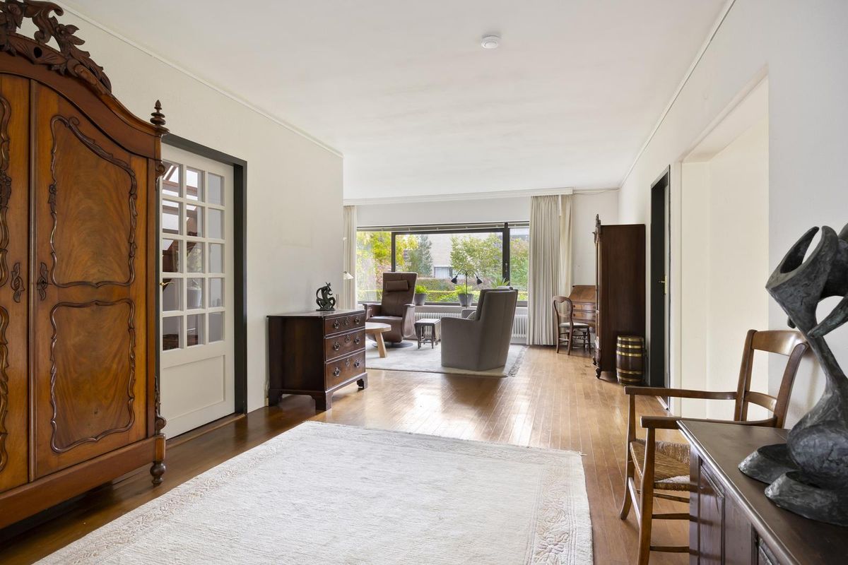 Vanuit de woonkamer heeft u toegang tot de keuken, eetkamer en werkkamer.