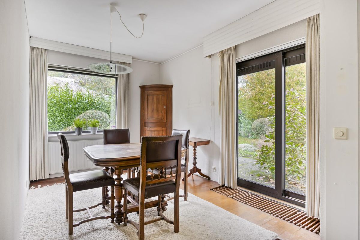 De aparte eethoek, die aan de achterzijde van de woning ligt, heeft een schuifpui naar de tuin zodat u het binnen- en buitenleven kunt combineren.