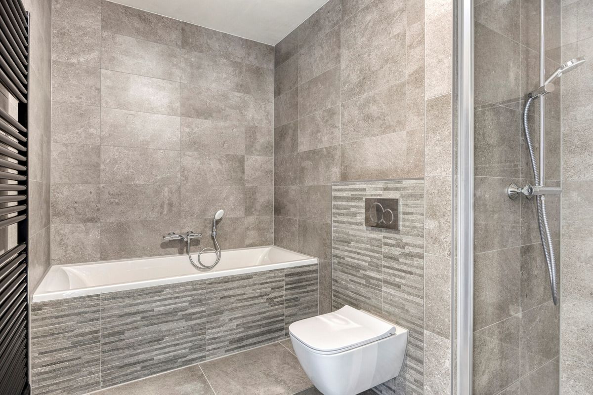 De tweede badkamer ligt tussen de twee andere slaapkamers in en is net zo is voorzien van een inloopdouche en wastafel.