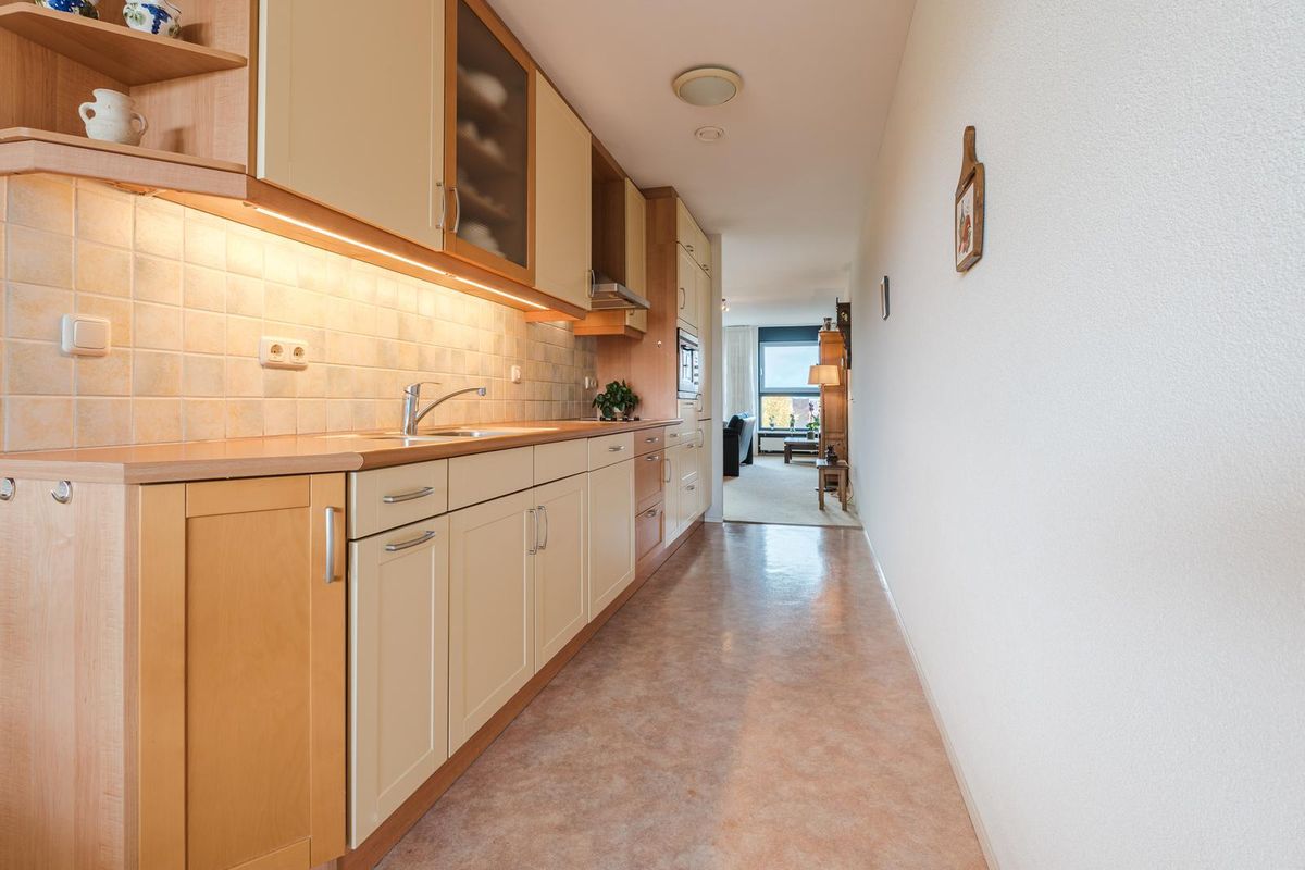 Entree met toilet, 2 slaapkamers, badkamer met een royale douche (inclusief betegelde zitbank) en een fraai wastafelmeubel. Ruime en lichte woonkamer met een halfopen keuken voorzien van een 4-pits keramische kookplaat, afzuigkap, vaatwasser, combimagnetron, koelkast en een diepvries. Doorloop naar de eetkamer, die grenst aan een groot balkon gelegen op het zuidwesten.