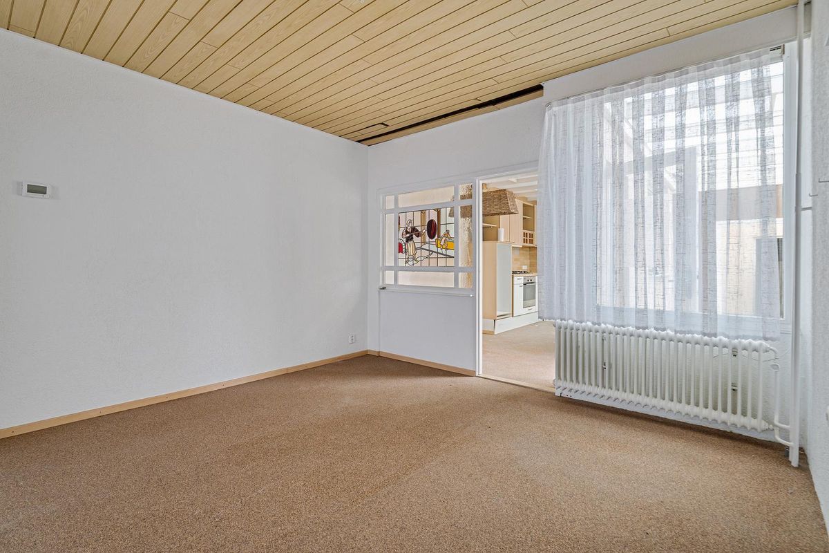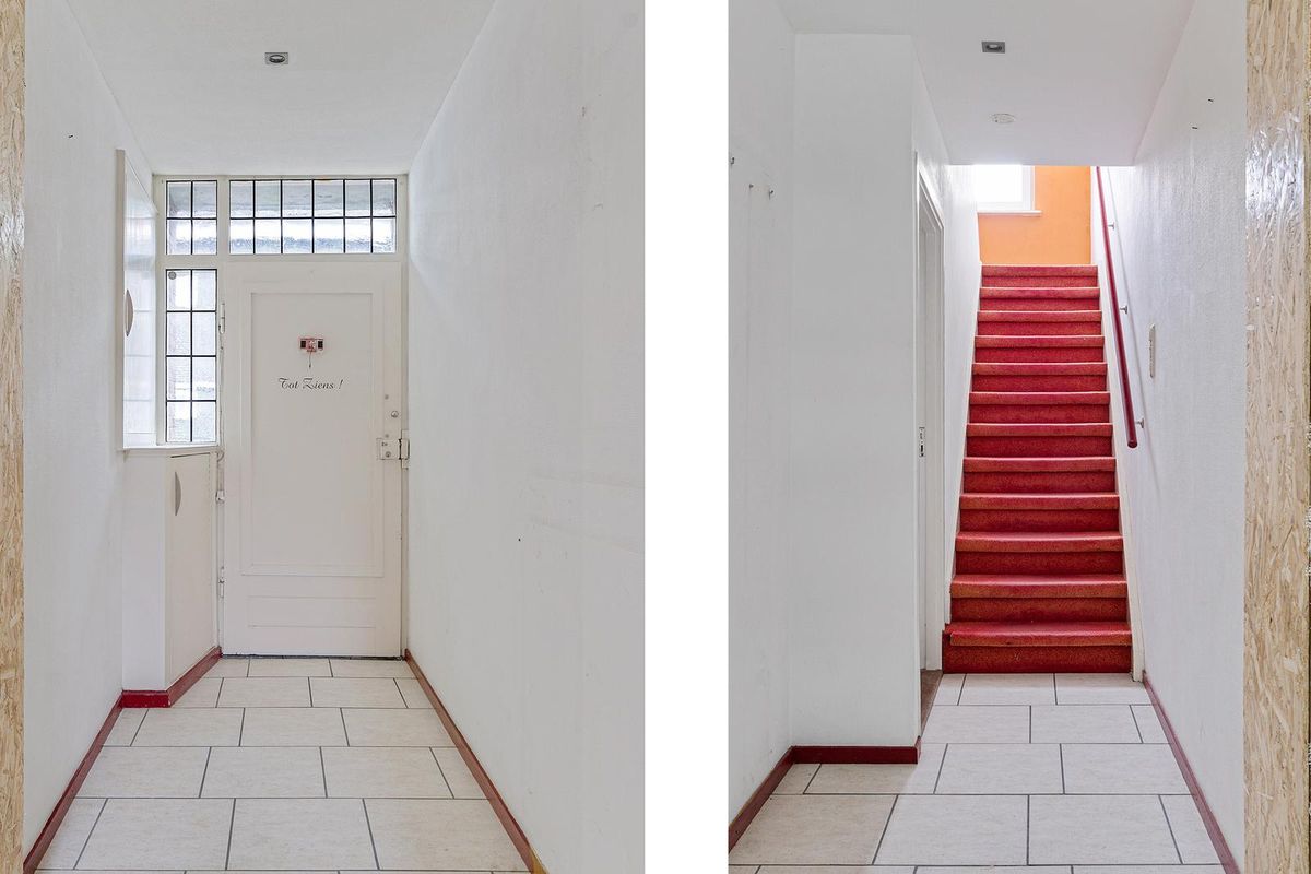 Via de entree kom je binnen in de hal, die toegang biedt tot de trap naar de eerste verdieping, de woonkamer en de meterkast. De woonkamer ademt de sfeer van de authentieke jaren ’30, de karakteristieke details zorgen voor een warme en charmante uitstraling. Het glas-in-loodraam richting de keuken versterkt het nostalgische karakter van deze ruimte.