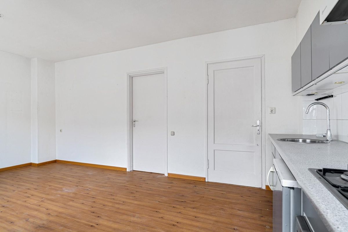 Vanuit de woonkamer is er directe toegang tot de keuken.