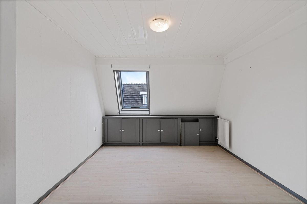 De slaapkamer aan de achterzijde beschikt over een dakraam, muurkast en een vlizotrap naar de zolder. Vanuit deze slaapkamer is de linker slaapkamer te bereiken, die eveneens over een dakraam beschikt. Aan de rechterkant van de voorzijde bevindt zich de derde slaapkamer, ook voorzien van een dakraam.