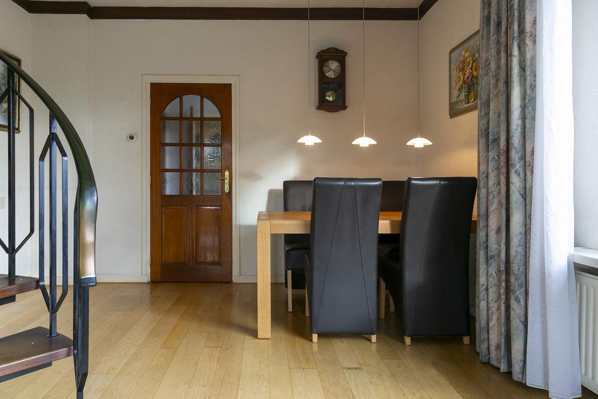 Entree, hal met trapopgang, toilet en toegang tot de lichte woonkamer. De woonkamer is aan de voorzijde gelegen en beschikt over veel lichtinval. Aan de voorzijde bevindt zich het zitgedeelte, hier geniet je van een prachtig vrij uitzicht over de straat en speeltuin. Aan de achterzijde van de woonkamer treffen we het zitgedeelte aan, door de grootte van de woonkamer is hier voldoende ruimte voor een flinke eettafel! Teven is de gewelfde kelder vanuit de woonkamer bereikbaar.