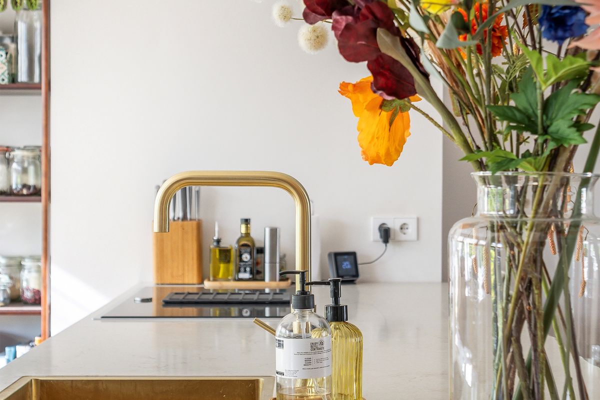For the kitchen prince and princesses among us: the open kitchen is the beating heart of the house. Completely high-end finished, with a sleek composite worktop and all the built-in appliances your heart desires. Think of an induction hob, dishwasher, fridge/freezer, combi-oven and an oven for baking. Thanks to the boiling water tap, you can make tea in no time or get straight to work on your favourite recipes. This is a dream come true for every foodie!
