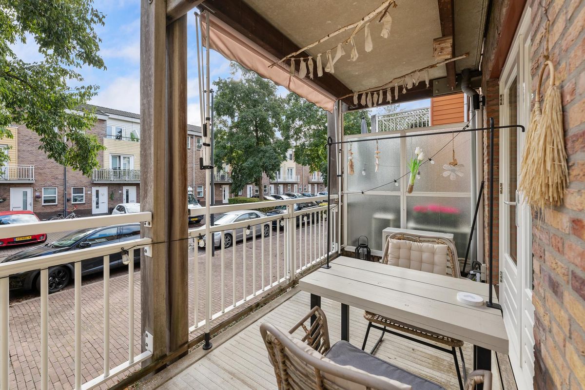 Niet te vergeten het fijne balkon: een heerlijk plekje voor een kop koffie in de ochtendzon of een goed glas wijn aan het einde van de dag. Door het bovengelegen balkon zit je lekker droog op regenachtige dagen, en wat dacht je van het plaatsen van een heater zodat je in elk seizoen van het balkon kunt genieten?