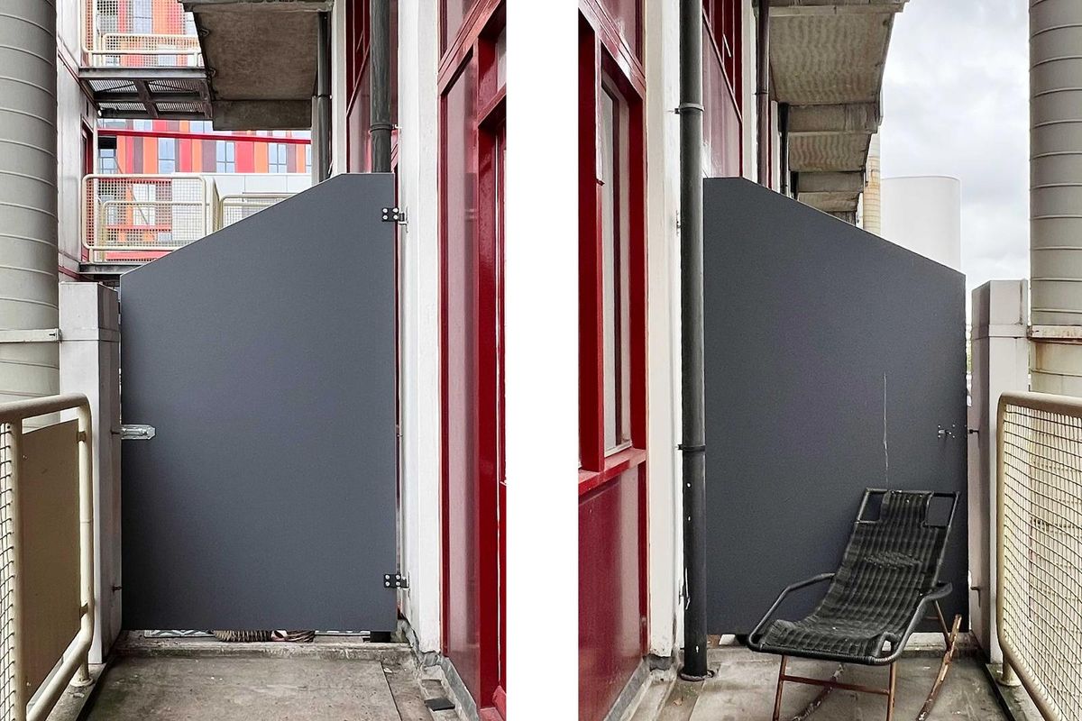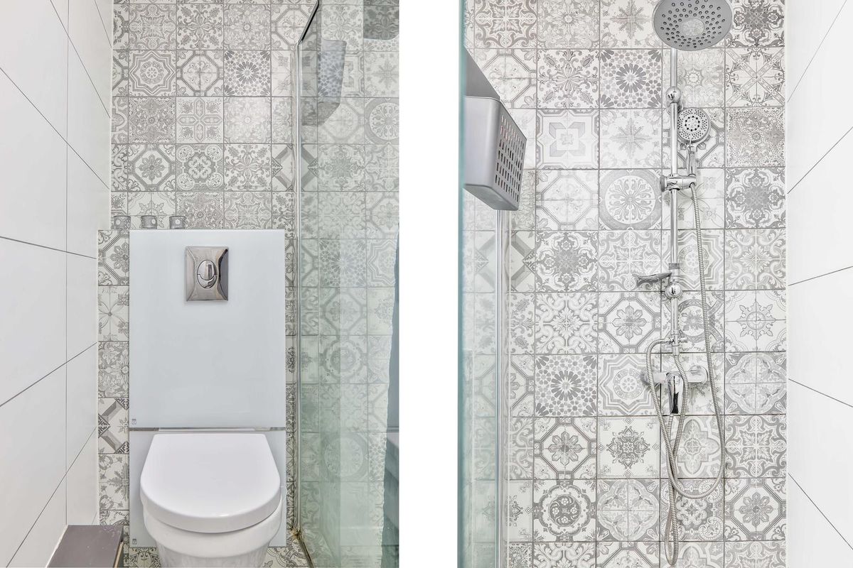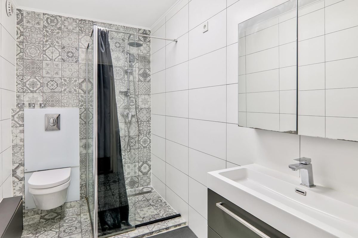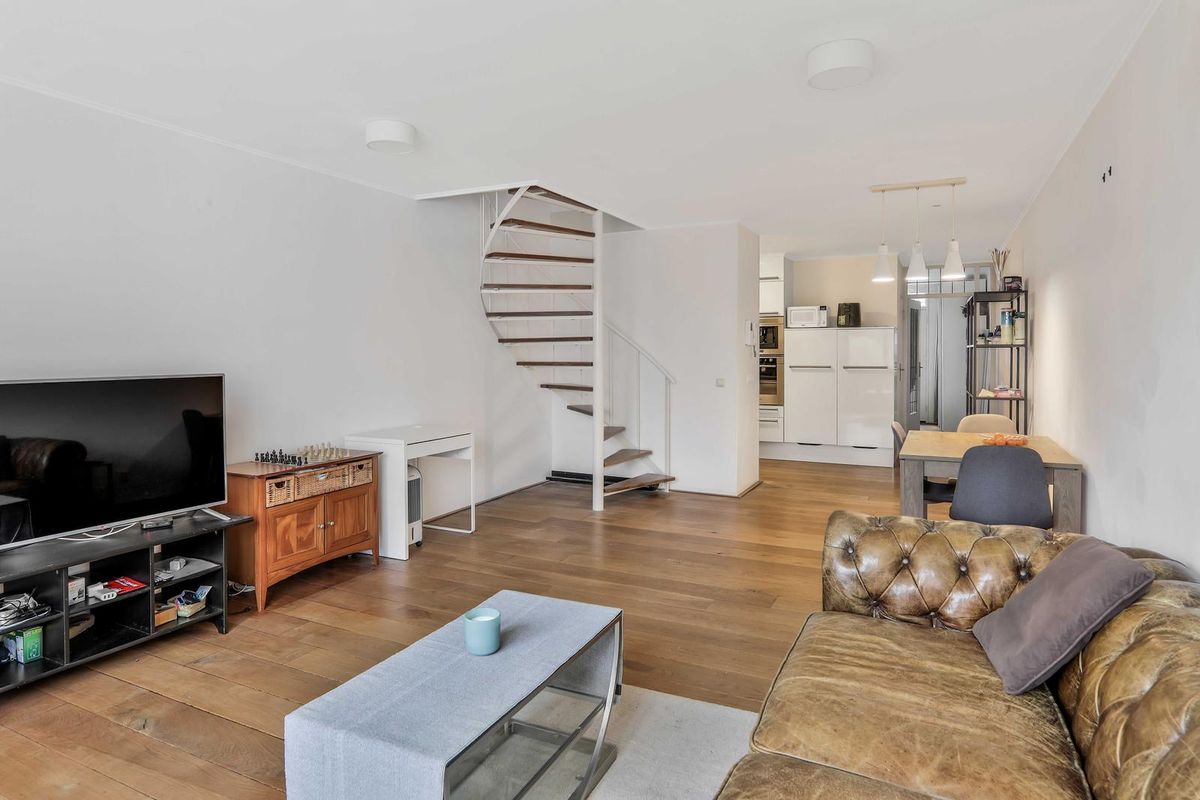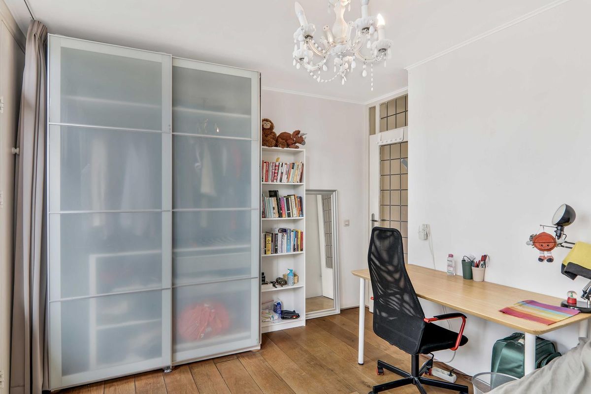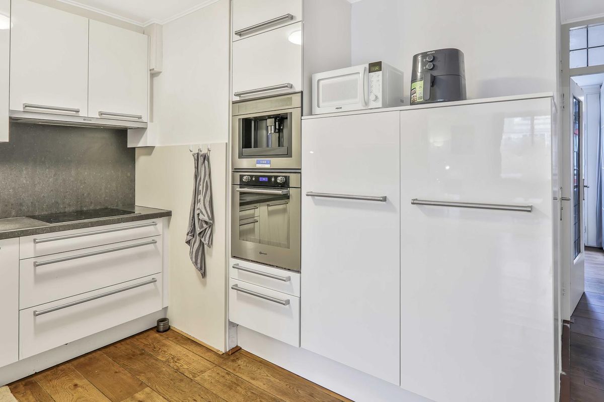 Via een interne trap kom je op de vijfde verdieping uit bij de lichte woonkamer met de halfopen keuken, de tweede slaapkamer met balkon en de badkamer met toilet. Dankzij de grote raampartijen valt er volop daglicht binnen, wat zorgt voor een aangename en open sfeer. De moderne keuken is voorzien van alle wenselijke inbouwapparatuur en biedt genoeg ruimte.