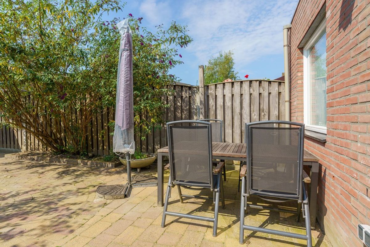 The backyard is largely paved and is therefore maintenance-friendly. The garden is south-facing so that you can enjoy the sun to the fullest. In addition, the garden has a tap and a back entrance.