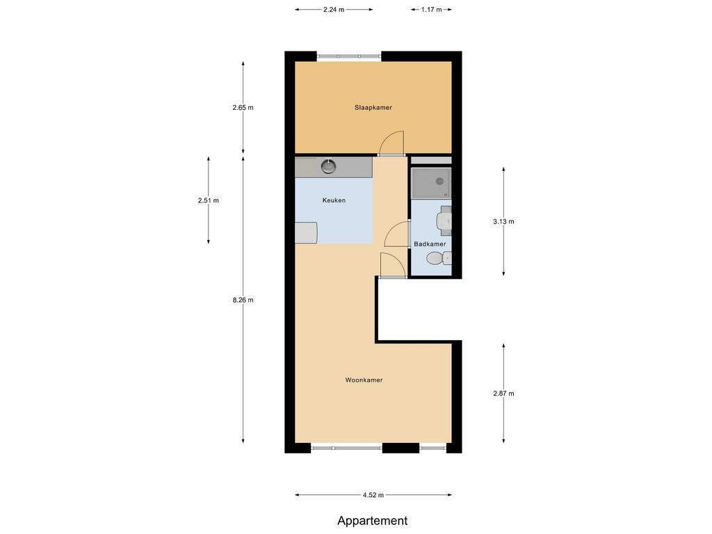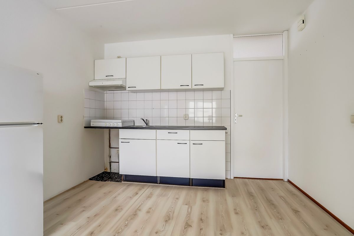 Keuken: De open keuken is praktisch ingericht met een keukenblok voorzien van onder- en bovenkasten, een gaskookplaat en een afzuigkap. Ook vind je hier de aansluitingen voor de wasmachine. Vanuit de keuken heb je direct toegang tot zowel de badkamer als de slaapkamer.
