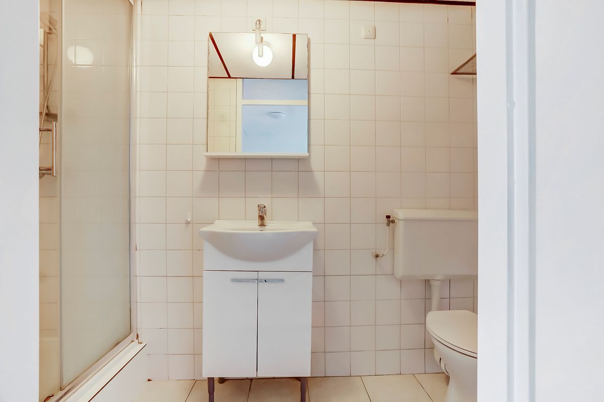Badkamer: De geheel betegelde badkamer is compleet uitgerust met een douchecabine, een toilet en een wastafel met praktisch wastafelmeubel.