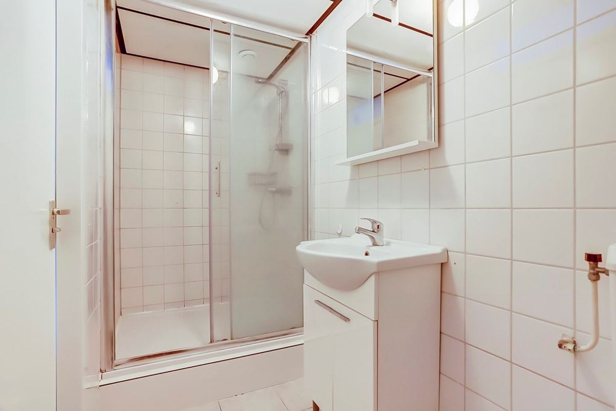 Badkamer: De geheel betegelde badkamer is compleet uitgerust met een douchecabine, een toilet en een wastafel met praktisch wastafelmeubel.