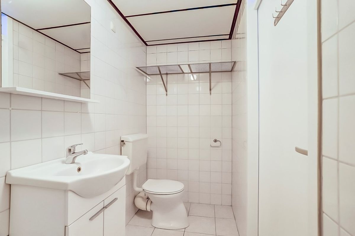 Keuken: De open keuken is praktisch ingericht met een keukenblok voorzien van onder- en bovenkasten, een gaskookplaat en een afzuigkap. Ook vind je hier de aansluitingen voor de wasmachine. Vanuit de keuken heb je direct toegang tot zowel de badkamer als de slaapkamer.
