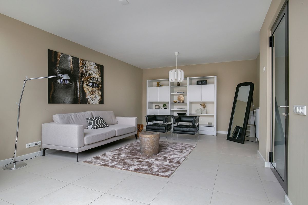 De royale overloop geeft toegang tot drie slaapkamers, een luxe badkamer, wasruimte en een tweede dakterras. Twee slaapkamers hebben direct toegang tot dit terras. De moderne badkamer is uitgerust met een inloopdouche met regendouche, ligbad, op maat gemaakt dubbel wastafelmeubel, designradiator en wandcloset. De praktische wasruimte beschikt over een lichtkoepel, vaste kast, pantry en witgoedaansluitingen.