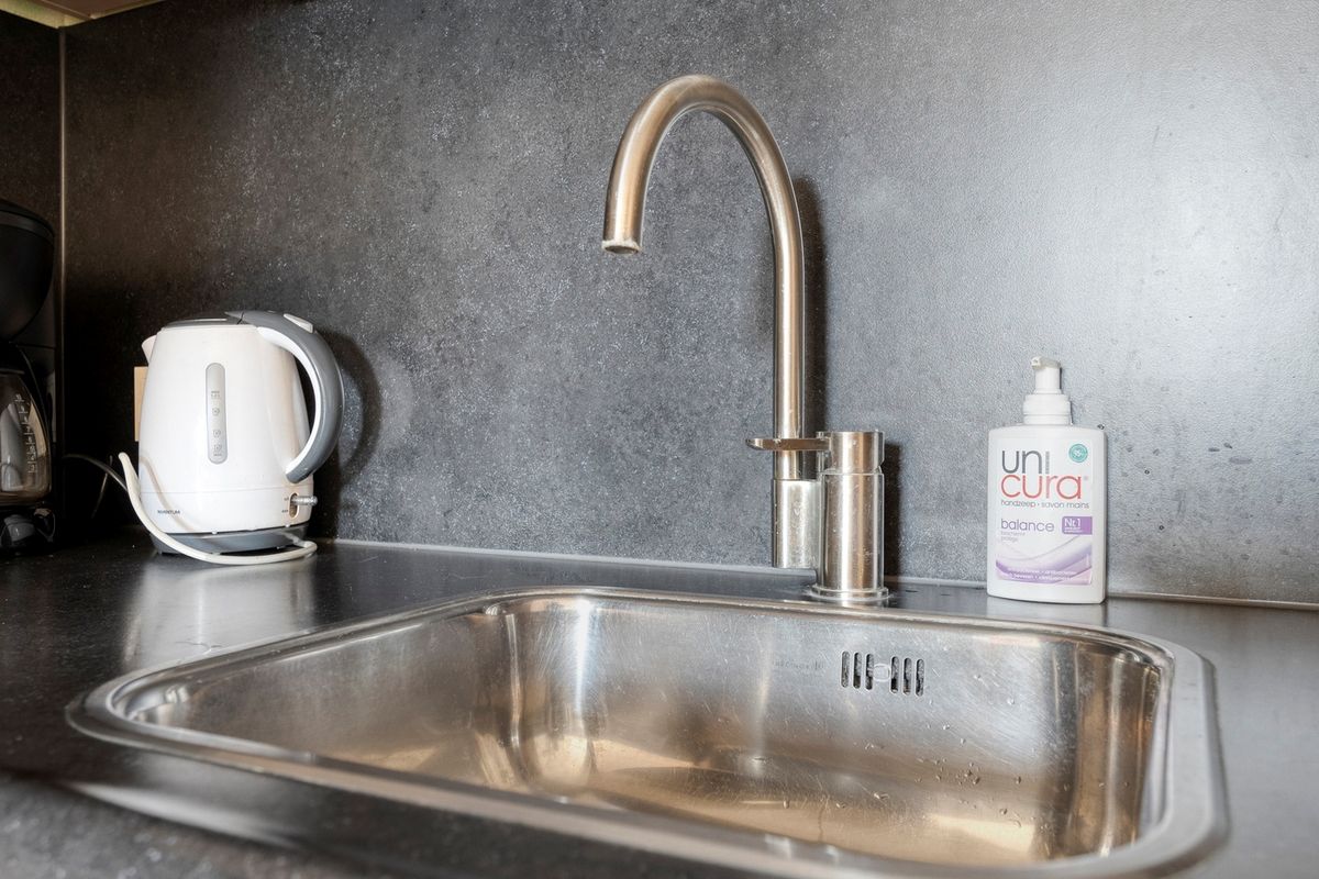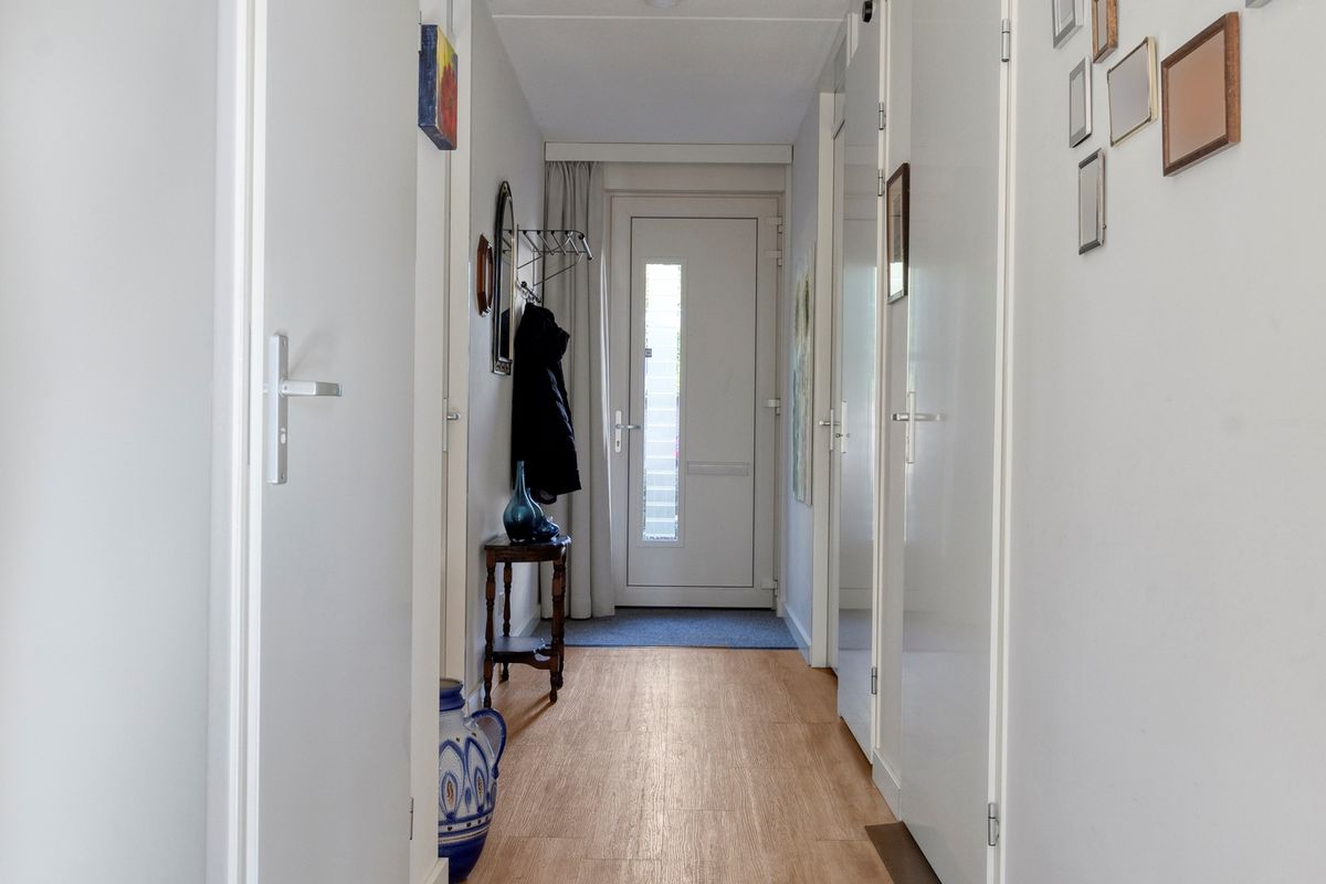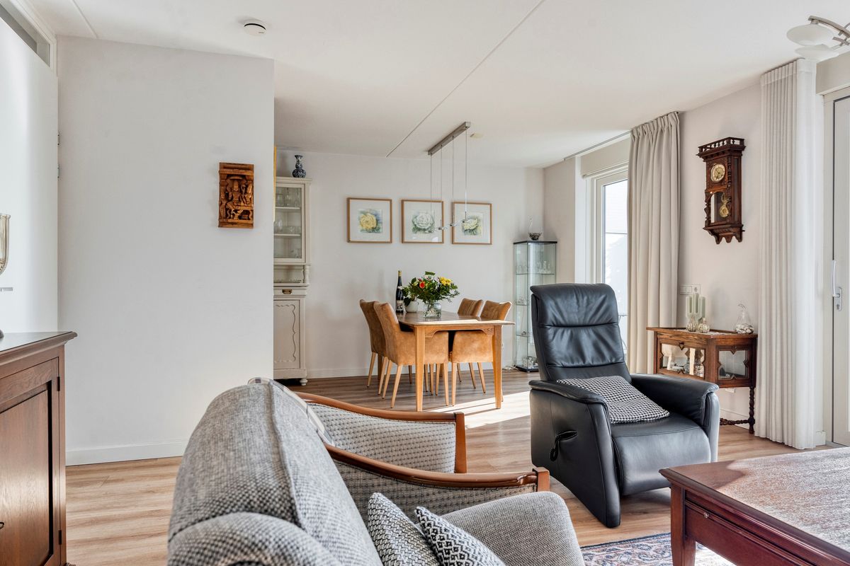 De living vormt het hart van de woning: een sfeervolle, open ruimte met een stijlvolle PVC-vloer en veel natuurlijk licht. De hoek opgestelde keuken is voorzien van diverse inbouwapparatuur, waaronder een keramische kookplaat, afzuigkap, combi-oven, koelkast en vaatwasser. Een groot pluspunt is de aangrenzende tuin op het zuidoosten, direct toegankelijk vanuit de woonkamer via openslaande deuren en een tuindeur. Deze buitenruimte voelt als een verlengstuk van de living , perfect om te ontspannen, te genieten van een ontbijtje in de ochtendzon of ’s avonds nog even buiten te zitten.