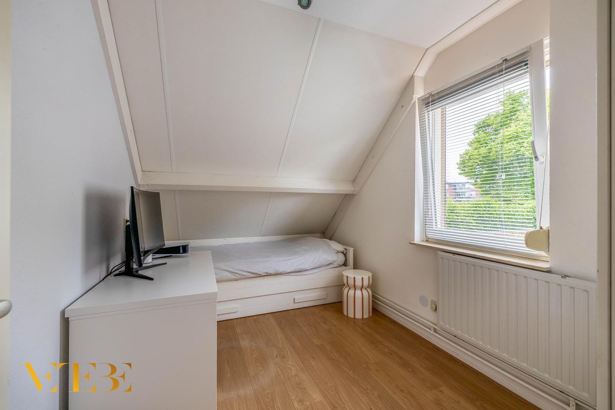 Deze, mogelijke vierde slaapkamer (ca. 13m²) is voorzien van een laminaatvloer, een Velux dakraam met screen, de cv-ketel en veel bergruimte.