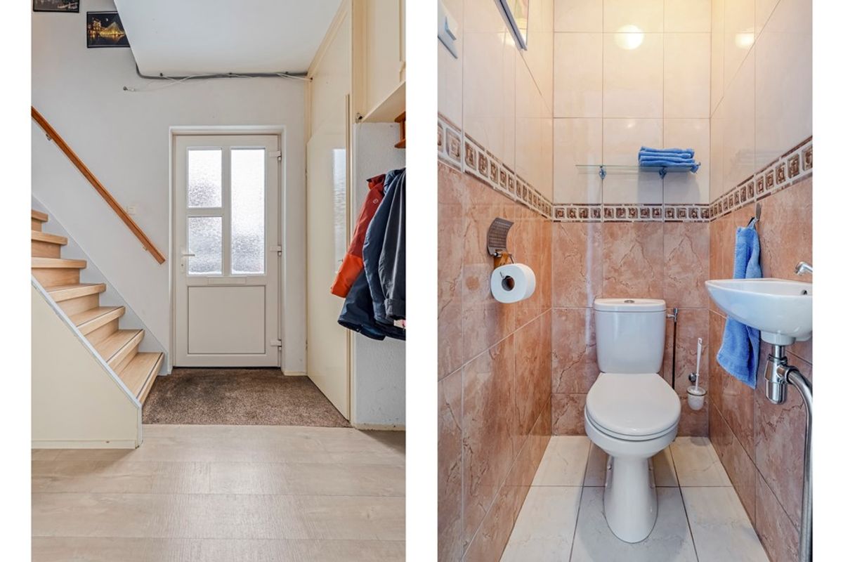 Binnenkomen doe je natuurlijk via de entree. Loop je verder, dan tref je de hal met meterkast en toilet, waarna je doorstroomt naar de ruime woonkamer. Hier plof je lekker op de bank, kijk je samen een film of organiseer je een gezellige spelletjesavond. Het eetgedeelte grenst aan de woonkamer. De keuken is voorzien van verschillende inbouwapparatuur.