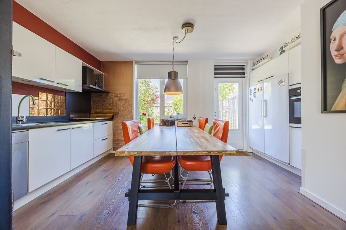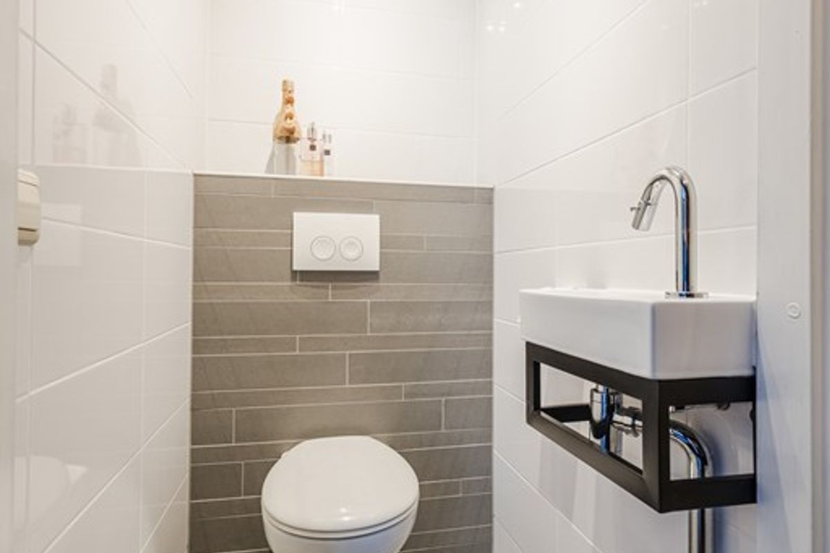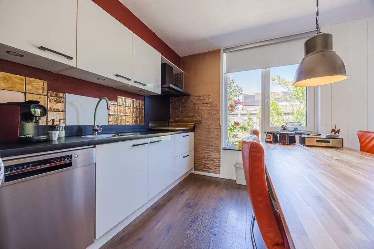 Aan de achterzijde bevindt zich de open keuken met onder andere een inductiekookplaat, oven, koel-vriescombinatie en vaatwasser. Vanuit de keuken is er toegang tot de tuin én tot een tussenhal met trapopgang en modern afgewerkt toilet.
