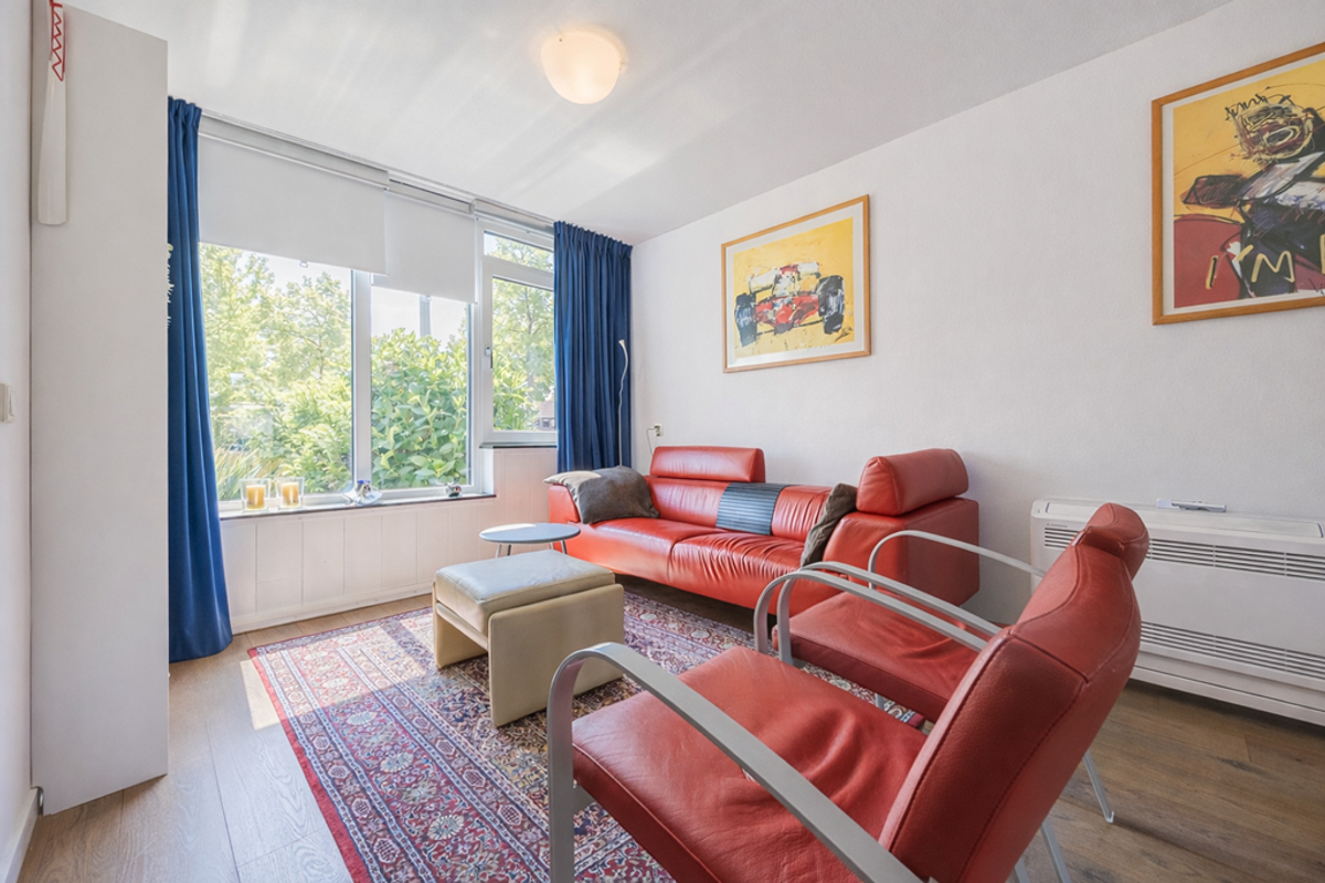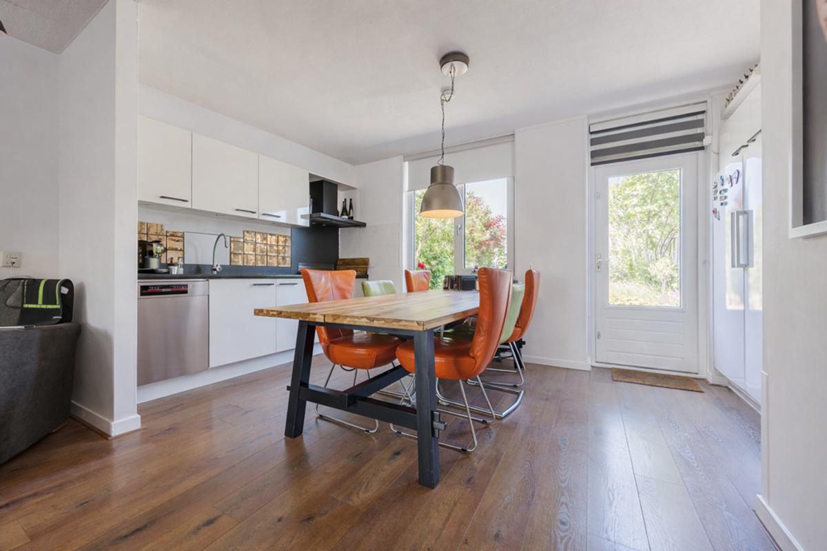 De woonkamer is licht, praktisch ingedeeld en voorzien van een trapkast en airco. De afwerking is recent deels vernieuwd, waarbij is gekozen voor rustige, eigentijdse kleurstellingen die zorgen voor een frisse en moderne uitstraling.
