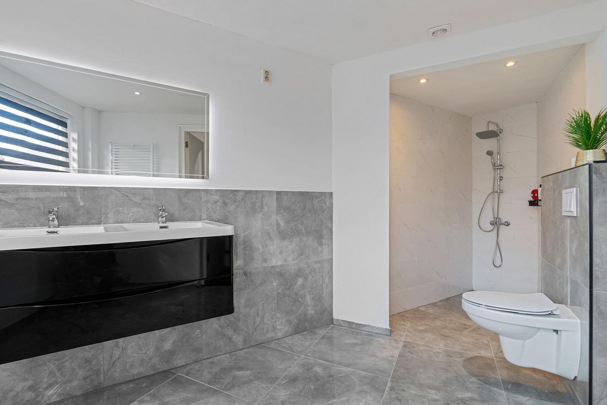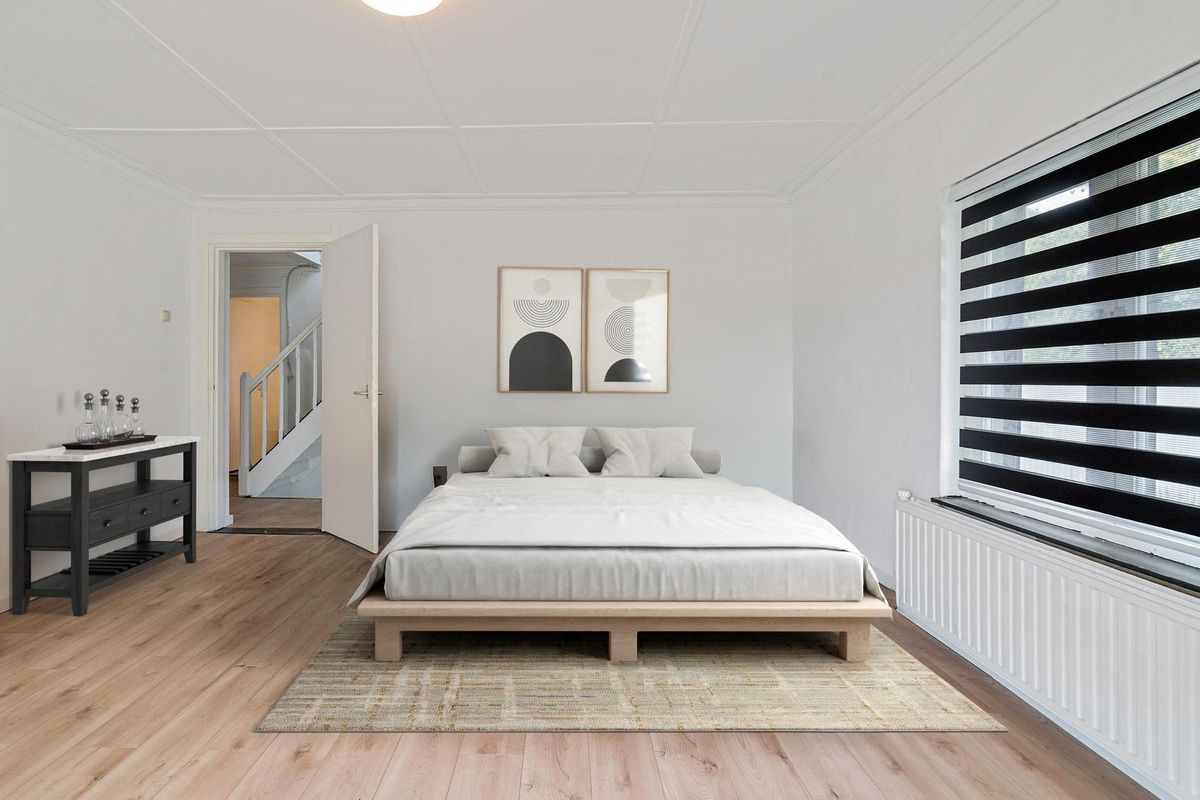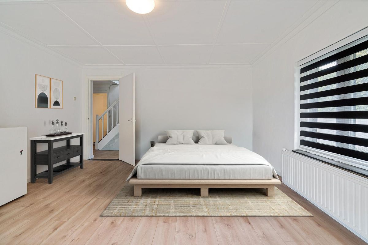 Op de overloop bevindt zich de toegang tot drie slaapkamers, de badkamer en de trap naar de zolder. De slaapkamer aan de achterzijde geeft via dubbele glazen deuren toegang tot een ruim terras.