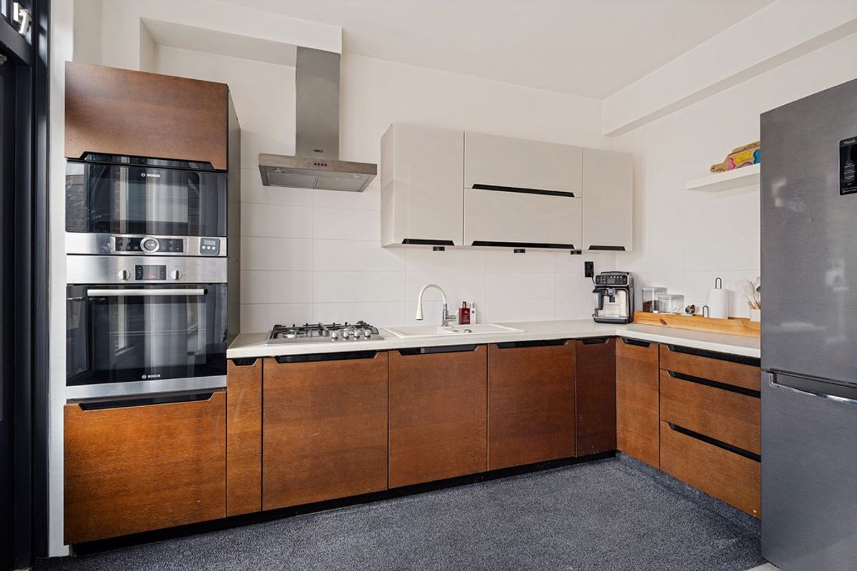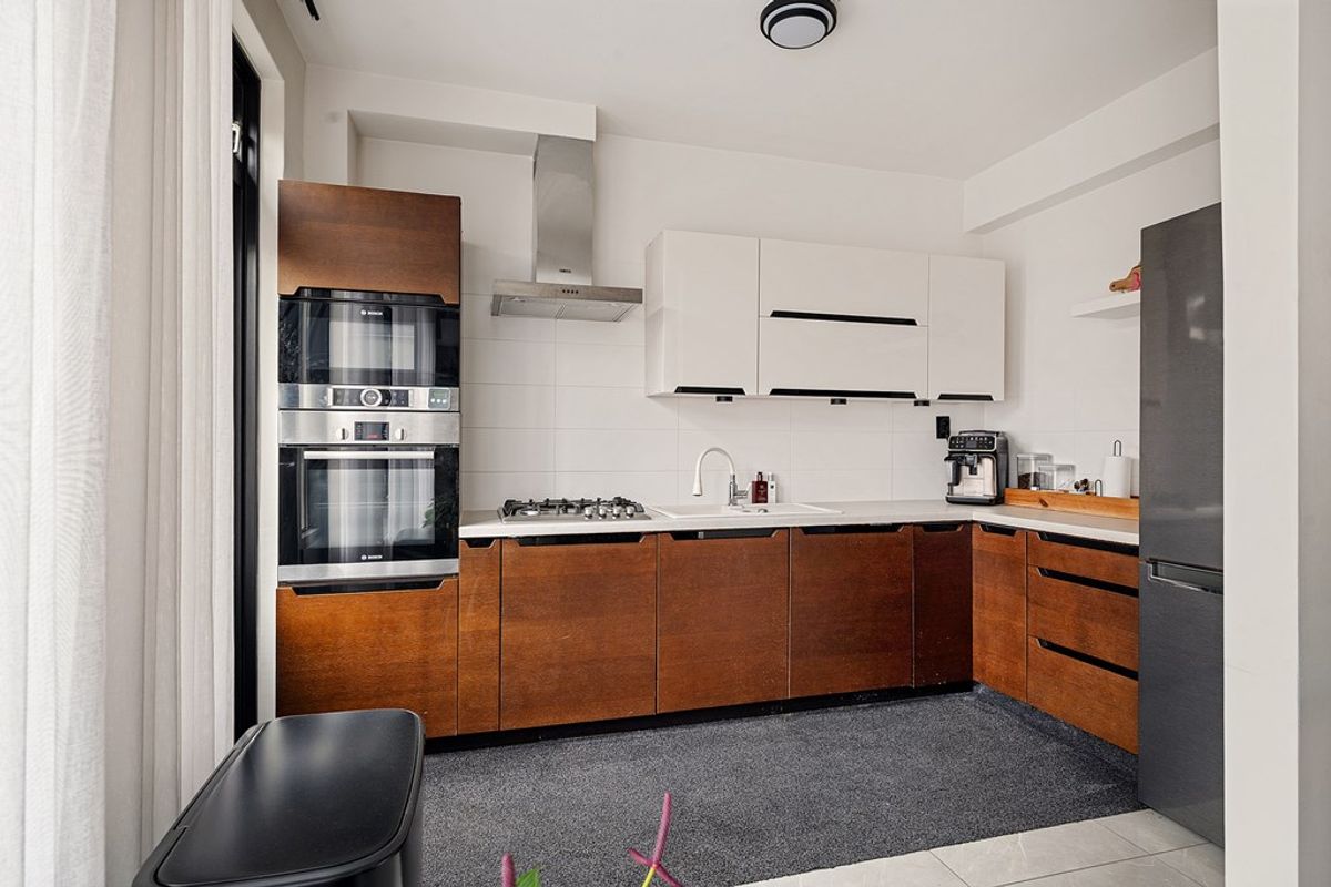 Wanneer je de voortuin doorloopt en binnenkomt, valt direct op hoeveel leefruimte het huis je biedt. De royale woonkamer vormt het hart van de woning: lekker licht dankzij grote raampartijen en met voldoende plek voor zowel een gezellige zithoek als een grote eettafel. Koken doe je in de praktische keuken, die eenvoudig toegang biedt tot de tuin, perfect voor wie van binnen naar buiten loopt met een dienblad vol lekkers.