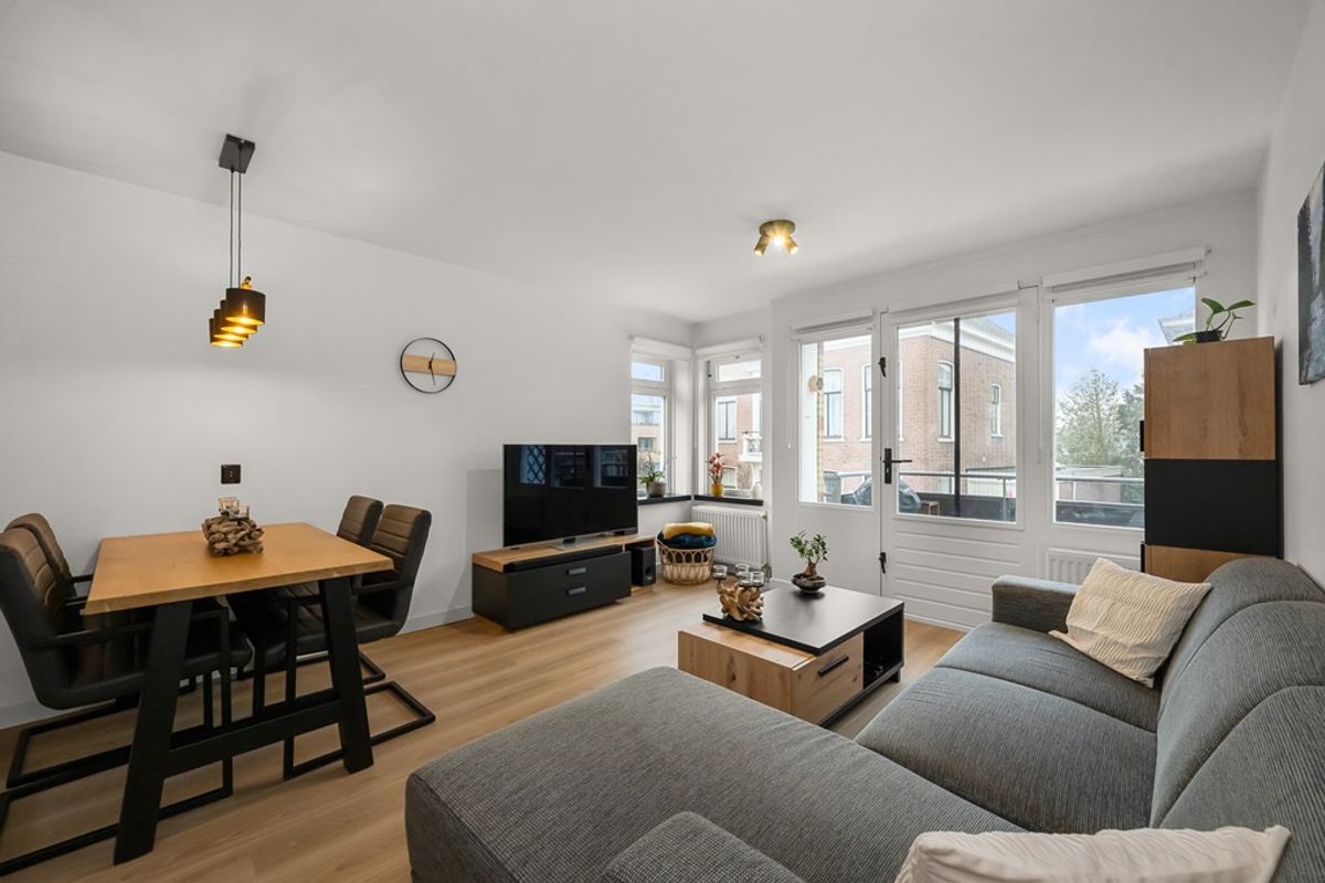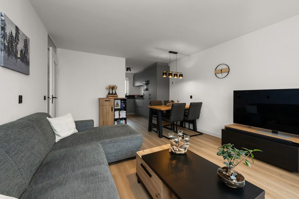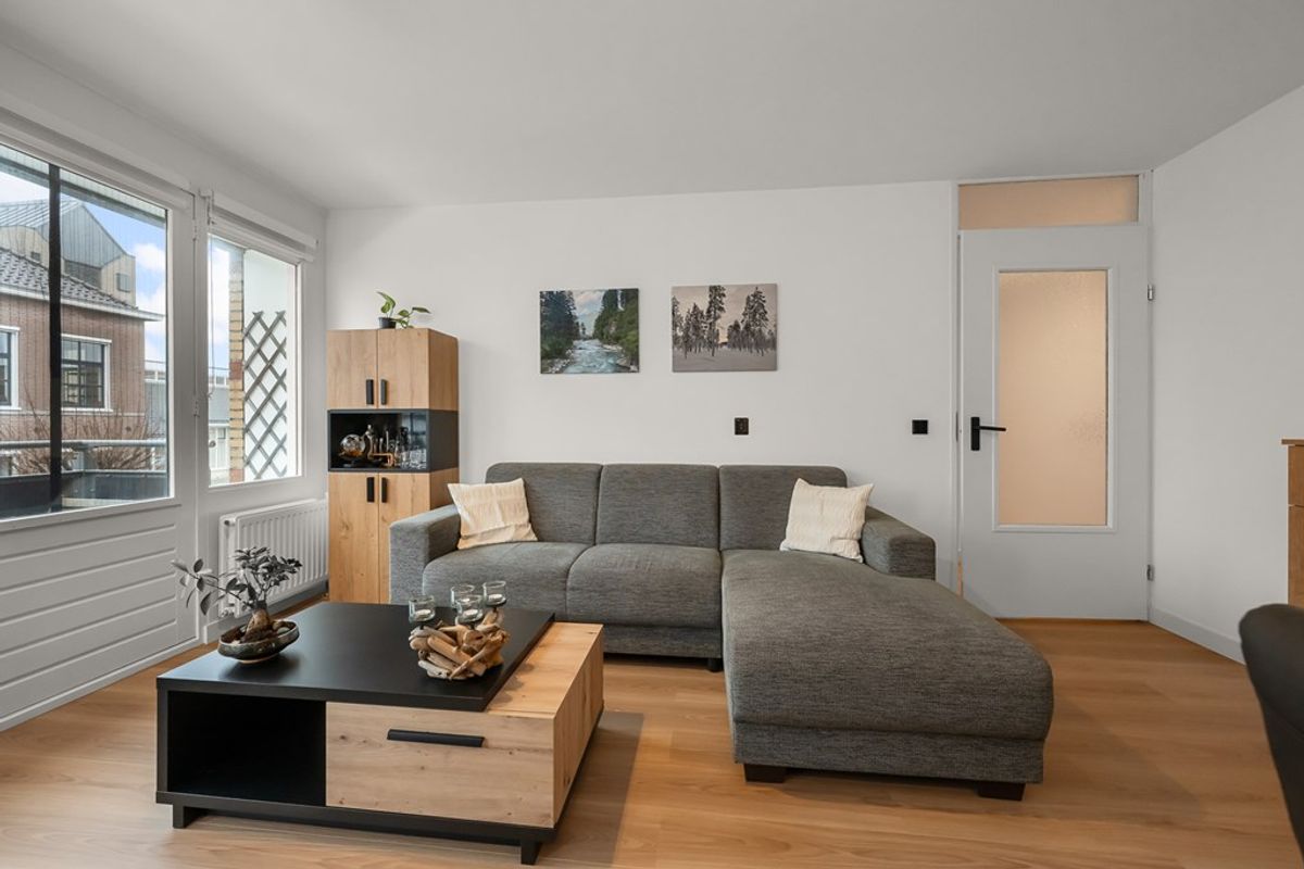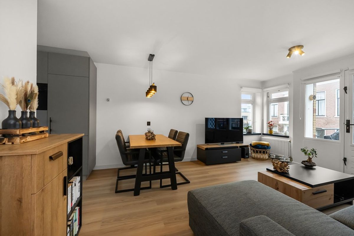 Via de entree/hal kom je in de lichte woon-/eetkamer, waar de verzorgde afwerking en prettige lichtinval direct opvallen. De ruimte staat in open verbinding met de moderne halfopen keuken, die in 2022 is vernieuwd en is uitgevoerd in een praktische hoekopstelling.