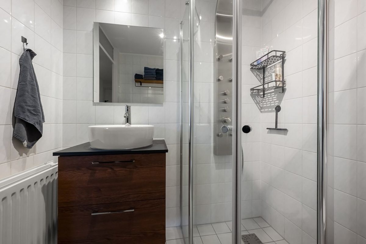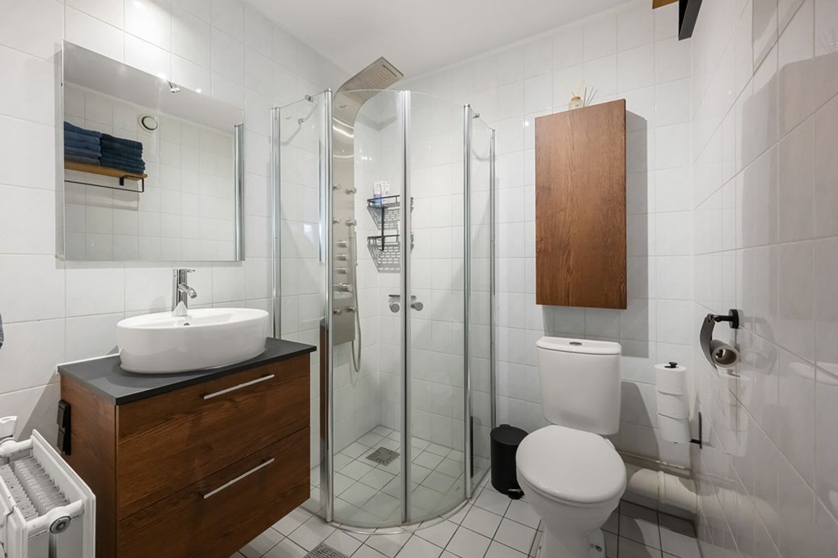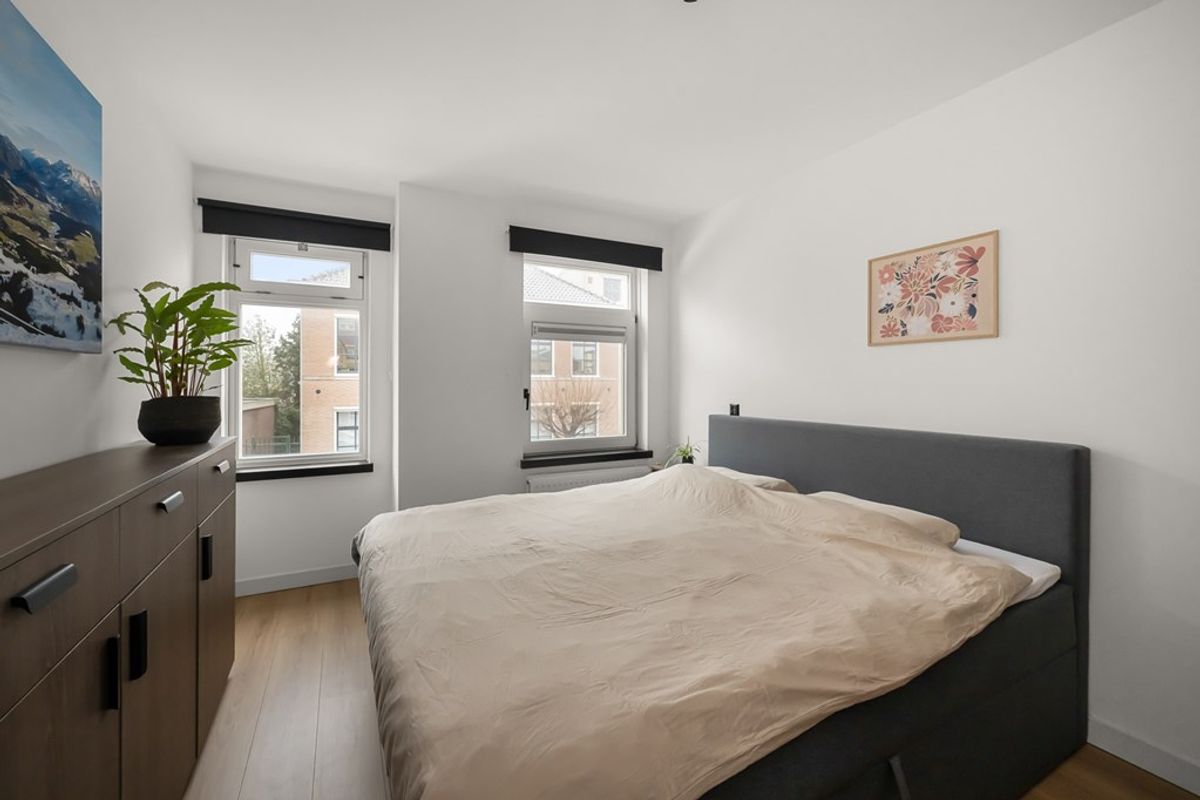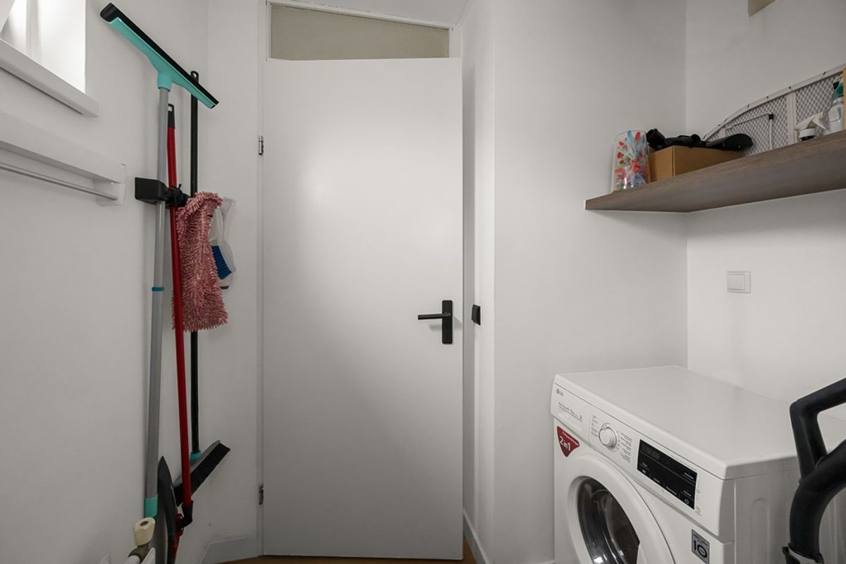 Er zijn twee slaapkamers aanwezig, één aan de voorzijde en één aan de achterzijde. Daarnaast is er een praktische inpandige bergruimte met aansluitingen voor wasmachine en wasdroger en de opstelling van de CV ketel. De badkamer is netjes uitgevoerd en voorzien van een douchecabine, wastafel en toilet.