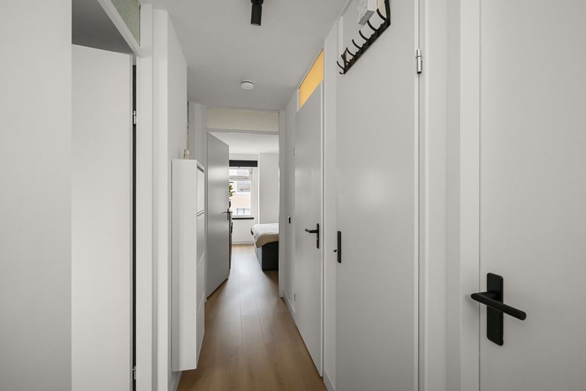 Het geheel is strak gestuukt en afgewerkt met een nette laminaatvloer en hoge plinten. Alles is keurig onderhouden en volledig instapklaar.