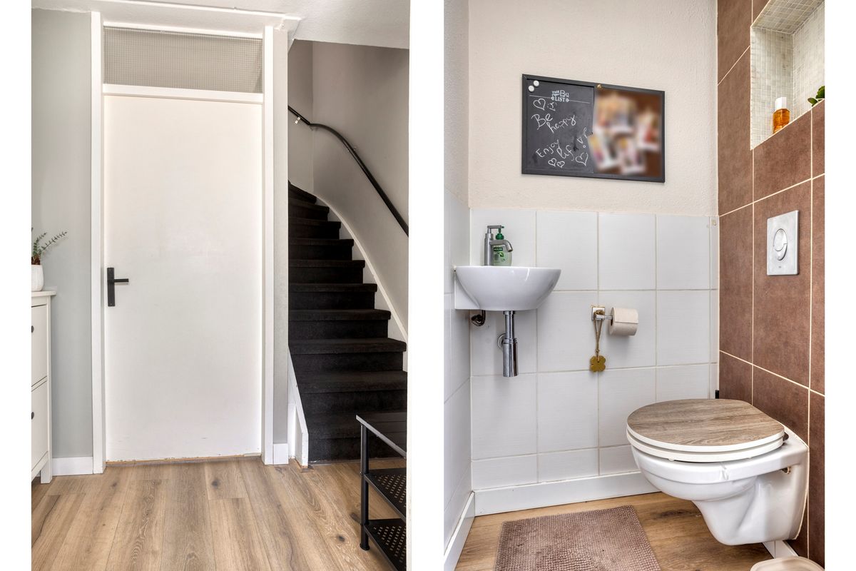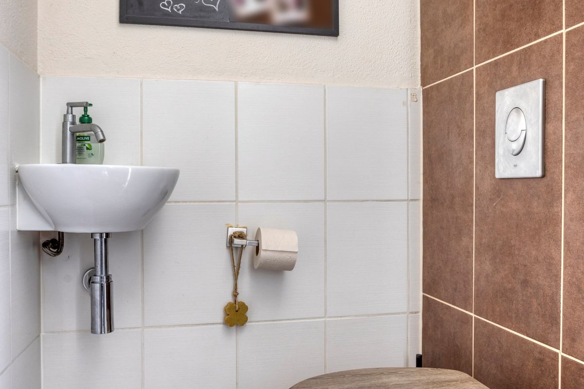 Daarnaast is er vanuit de overloop toegang tot de verzorgde badkamer welke gelegen is aan de voorzijde van de woning. De moderne badkamer, die is vernieuwd in 2022, is uitgerust met een inloopdouche, dubbele wastafel in meubel en een hangend toilet.
