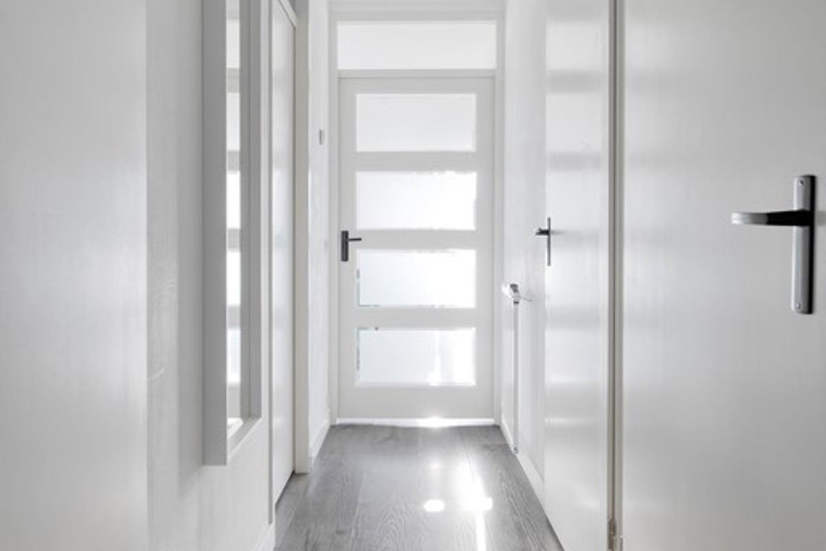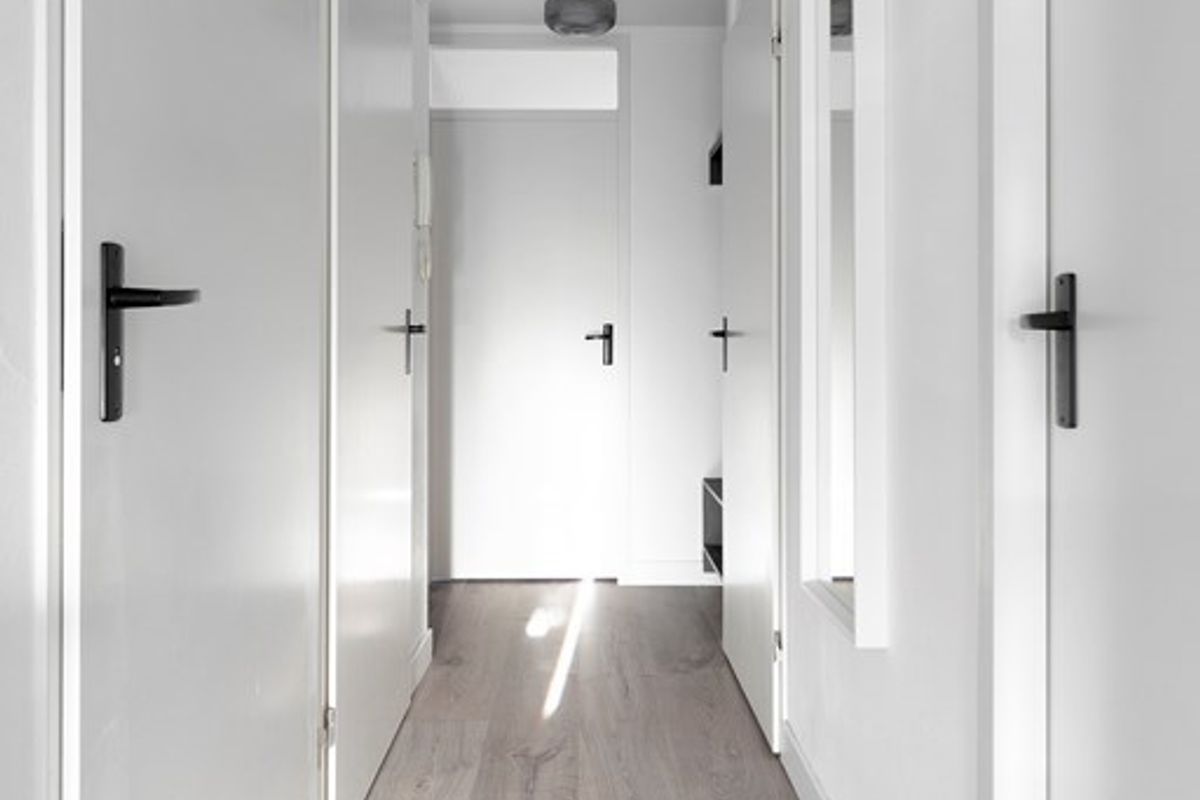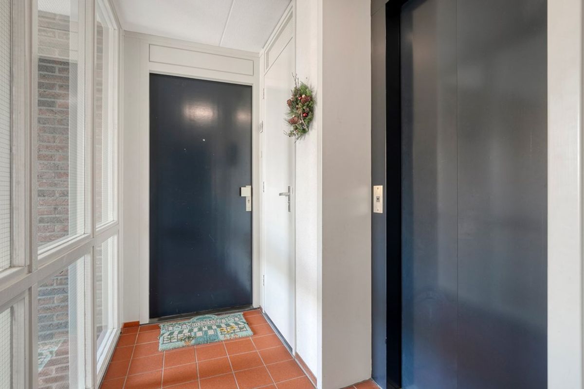 U betreedt het appartement via de gezamenlijke entree aan de straatzijde, waar tevens de brievenbussen en intercom zich bevinden. Via de trap of lift bereikt u uw eigen voordeur en komt u binnen in de hal. Deze centrale ruimte biedt toegang tot alle andere vertrekken van het appartement.