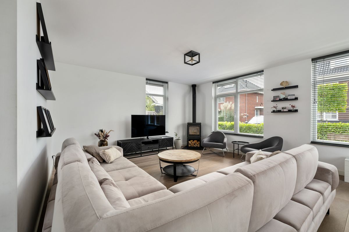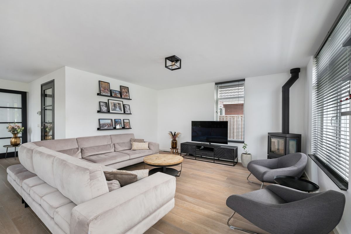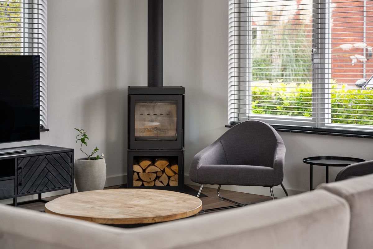 • Sfeervolle woonkamer met houtkachel en een woonkeuken