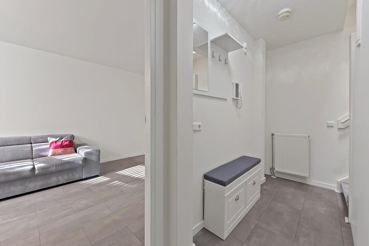 Via de entree bereik je het appartement op de tweede verdieping. De woonkamer heeft een fijne lichtinval en een strakke laminaatvloer. De afgesloten keuken is een ware eyecatcher: uitgevoerd met een houten werkblad, losse koelkast én vriezer, magnetron, oven, vaatwasser en een 4-pits inductieplaat. Hier kun je met plezier uitgebreid koken!