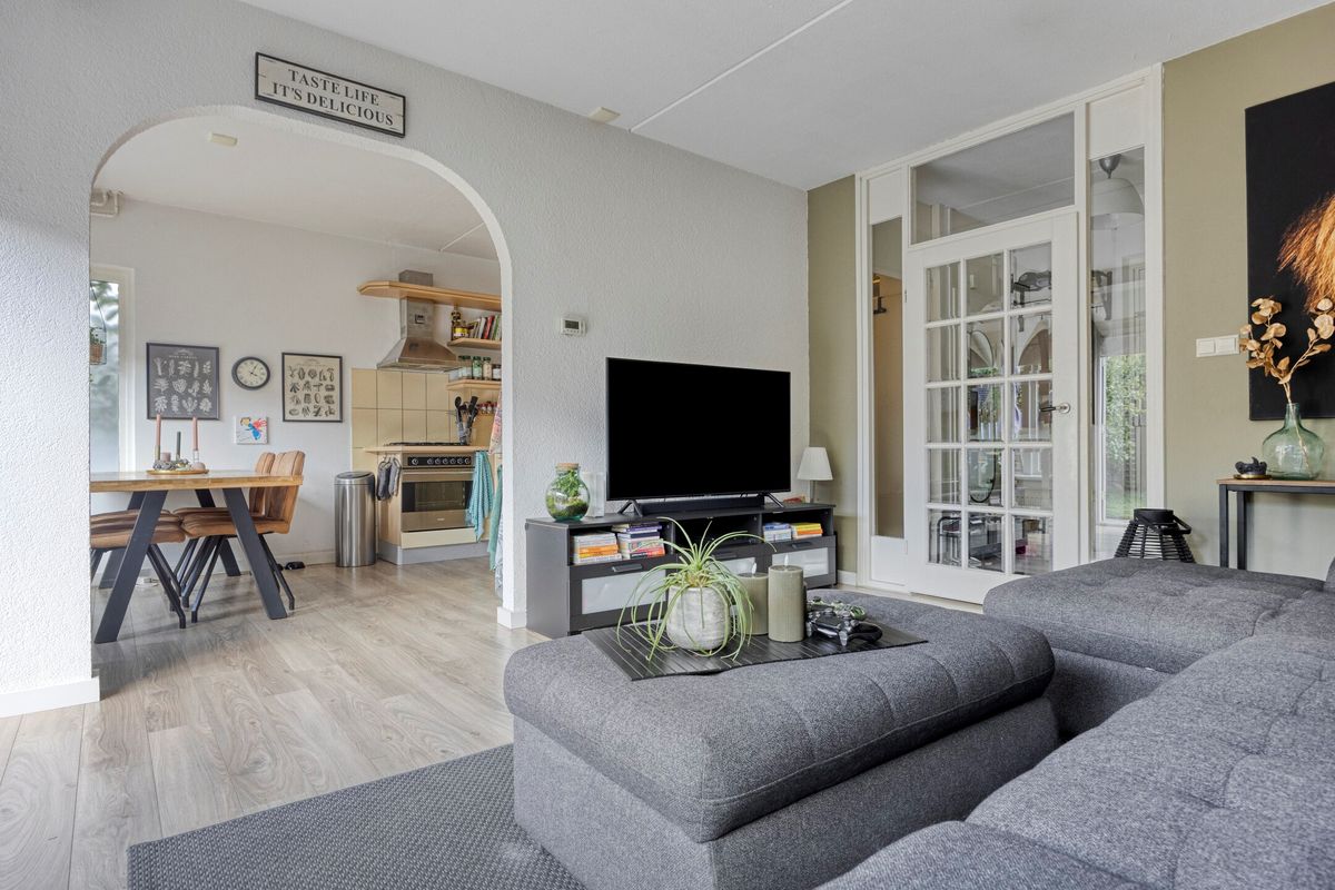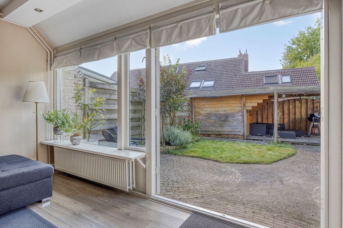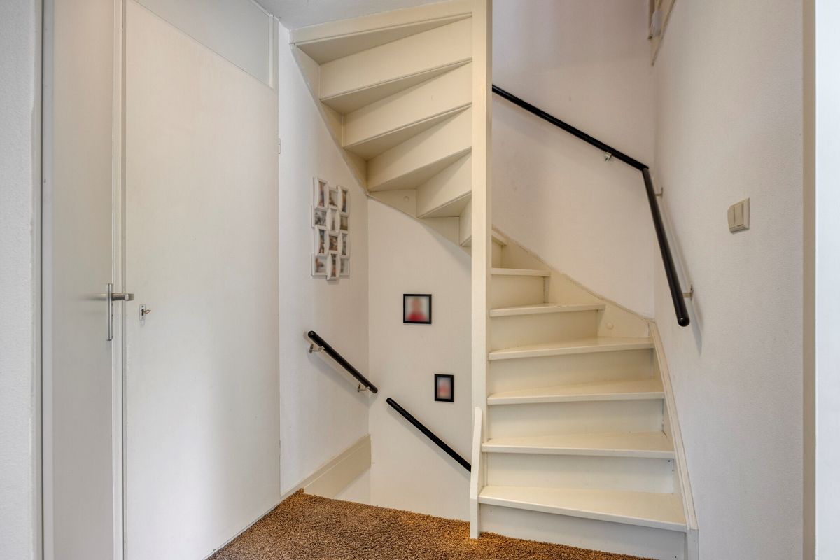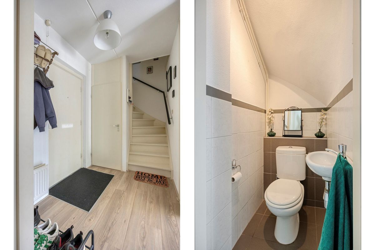 entree, hal met toilet, trap en inpandige berging met wasmachine-aansluiting. Woonkamer met halfopen keuken en toegang naar de fijne achtertuin welke een breedte heeft van ruim