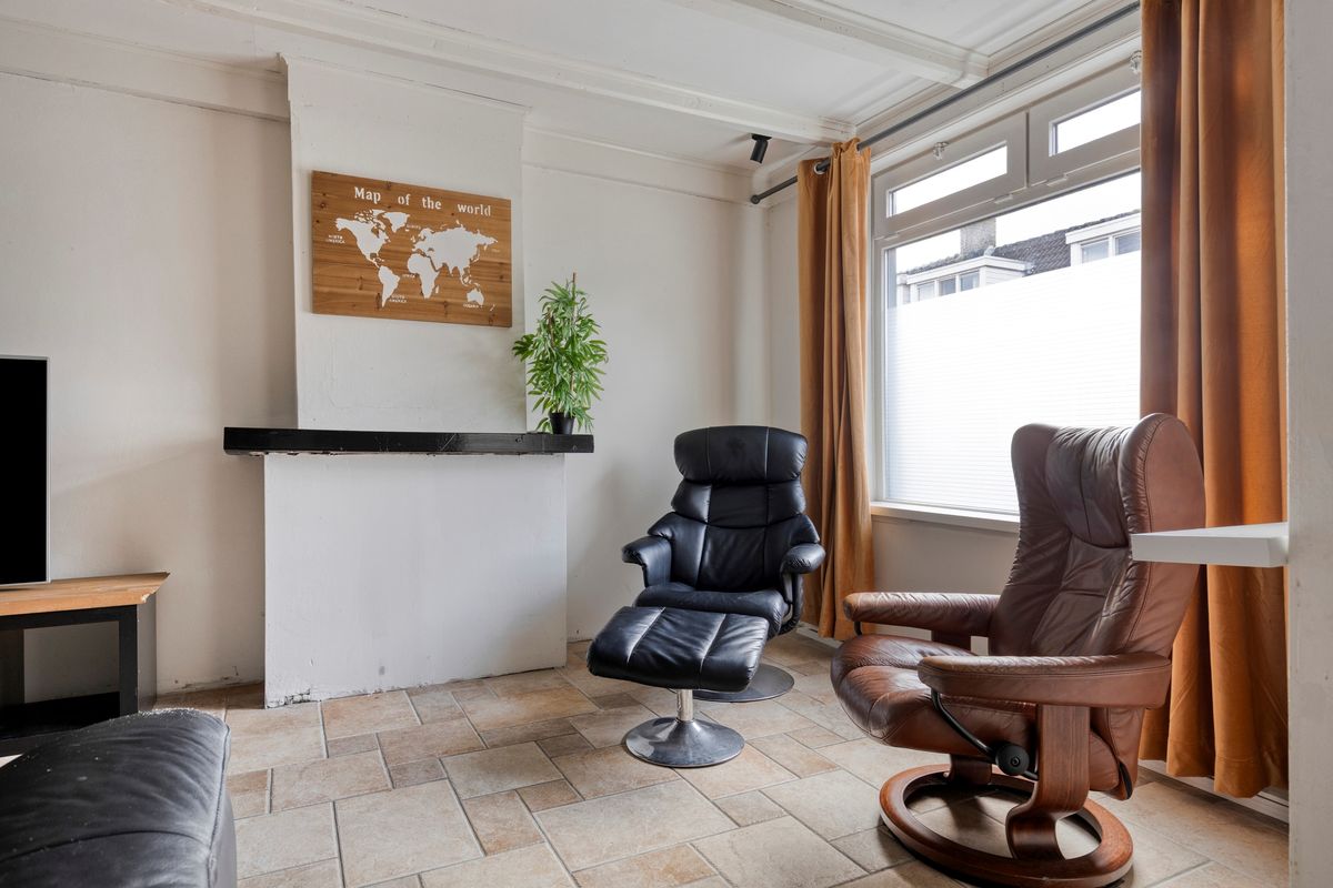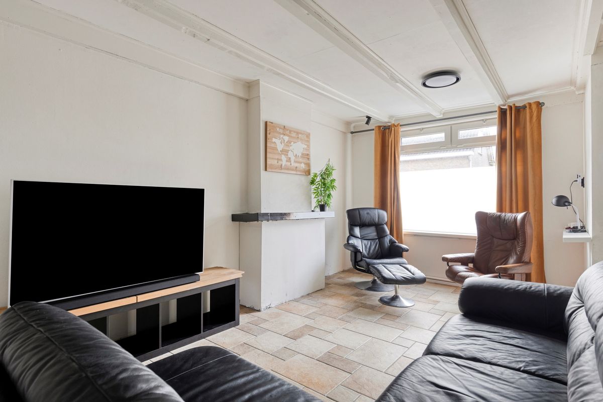 Via de hal – met meterkast (6 groepen, 2 aardlekschakelaars, vernieuwd in 2025) – kom je in de woonkamer. De plavuizen vloer en de balken aan het plafond geven de ruimte karakter, net als het niveauverschil dat hoort bij een typische dijkwoning. Er zijn kunststof kozijnen met dubbel glas aanwezig op deze verdieping.