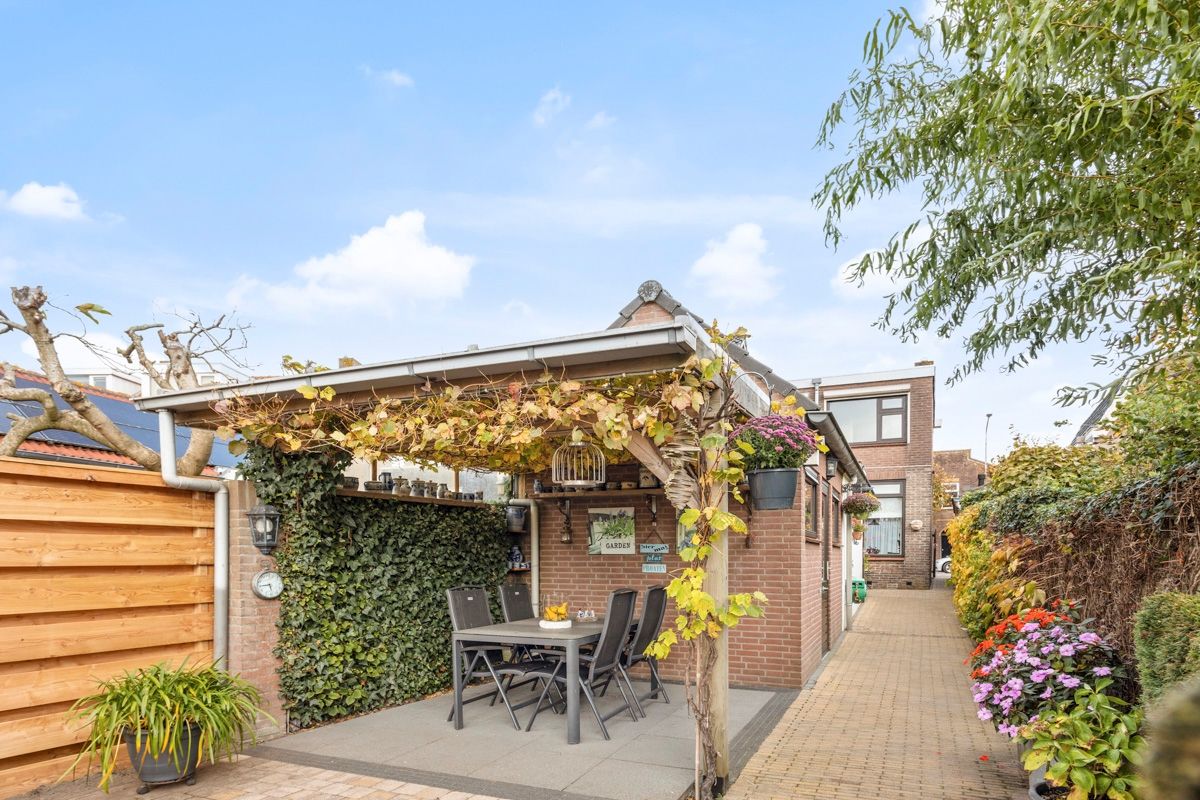 Vanuit deze goed onderhouden, op het zuidwesten gelegen, achtertuin heb je blijvend vrij uitzicht op de Kleine Schans. De gezellige achtertuin biedt veel privacy, hier is een overkapping aanwezig waaronder je lekker kunt relaxen of in alle vrijheid van een barbecue kunt genieten. De achtertuin is via een poort aan de oostzijde van de woning en/of via de deur in het portaal van de woning te bereiken.
