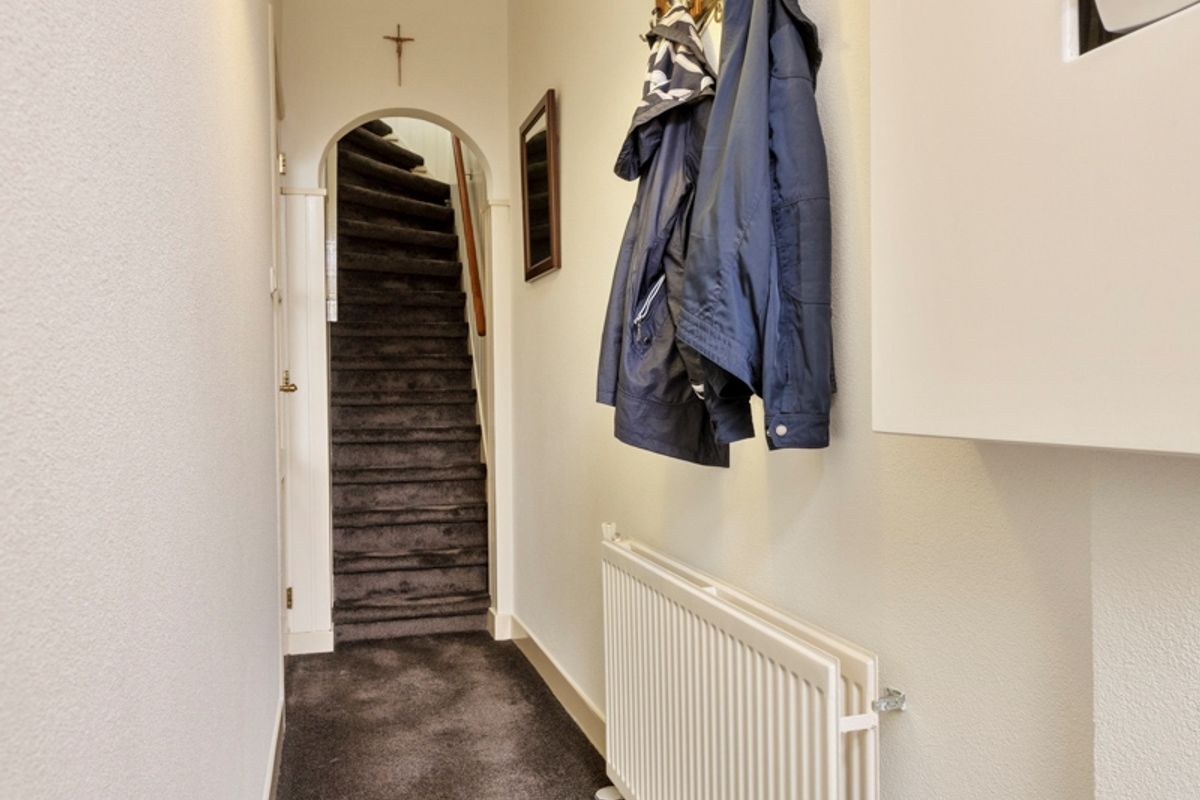 Entree/hal met meterkast, trapopgang naar de verdiepingsvloer en toegangsdeur naar de woonkamer.