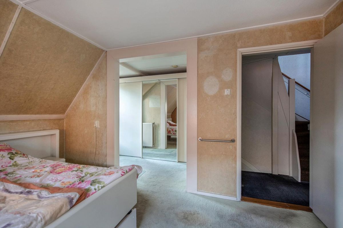 Voorzolder en ruime derde slaapkamer. De slaapkamer is uitgebreid met een dakkapel en achter de knieschotten is veel bergruimte beschikbaar.