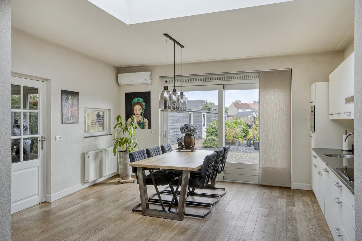 Ook binnenshuis straalt deze woning warmte en comfort uit. De sfeervolle woonkamer is voorzien van een eikenhouten vloer en een prachtige houthaard die direct de aandacht trekt. De open keuken is licht, praktisch en uitgerust met een inductiekookplaat, afzuigkap, vaatwasmachine en een combi-oven. Openslaande tuindeuren verbinden binnen moeiteloos met buiten, waardoor de tuin op natuurlijke wijze een verlengstuk wordt van je leefruimte. In 2022 is bovendien een airco geplaatst in de keuken, wat zorgt voor extra comfort in elk seizoen. De aangrenzende bijkeuken biedt plaats aan het witgoed en de cv-installatie.