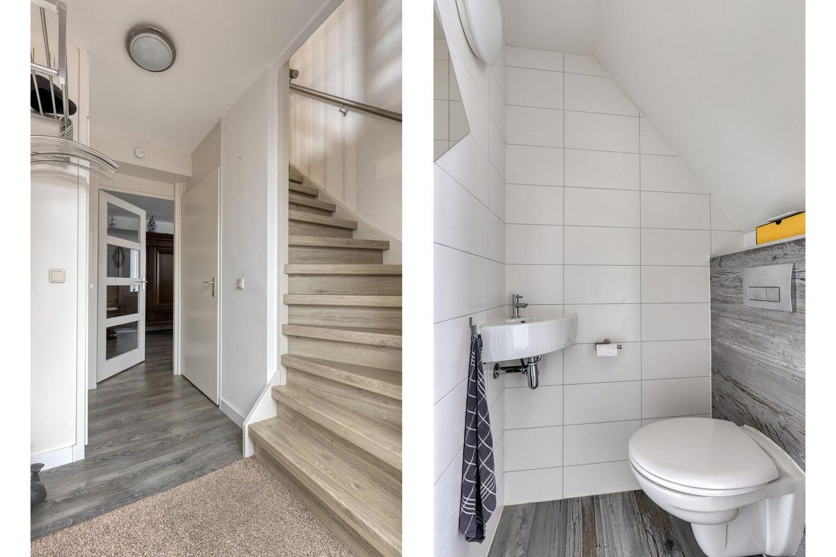 Via de ruime oprit, met plaats voor meerdere auto’s, bereik je de entree van de woning. In de hal vind je de trapopgang naar de eerste verdieping, een moderne meterkast en een geheel betegeld toilet met wandcloset en fontein.