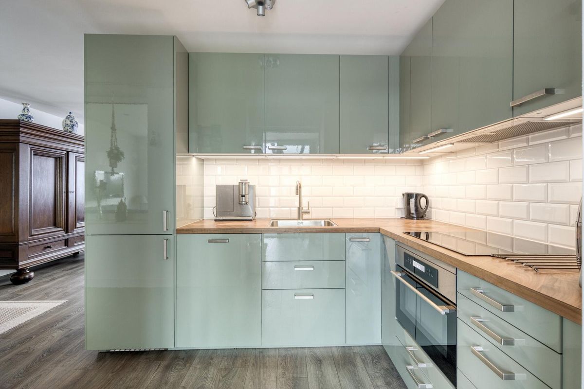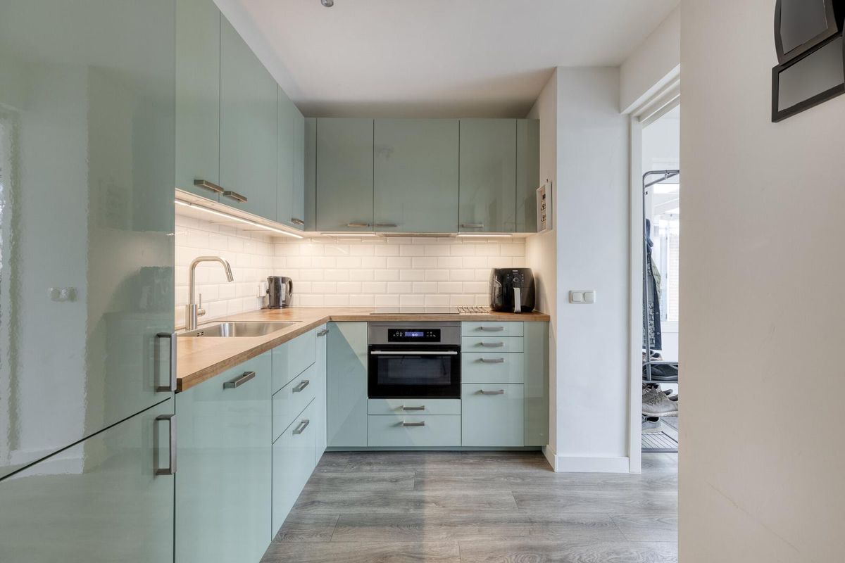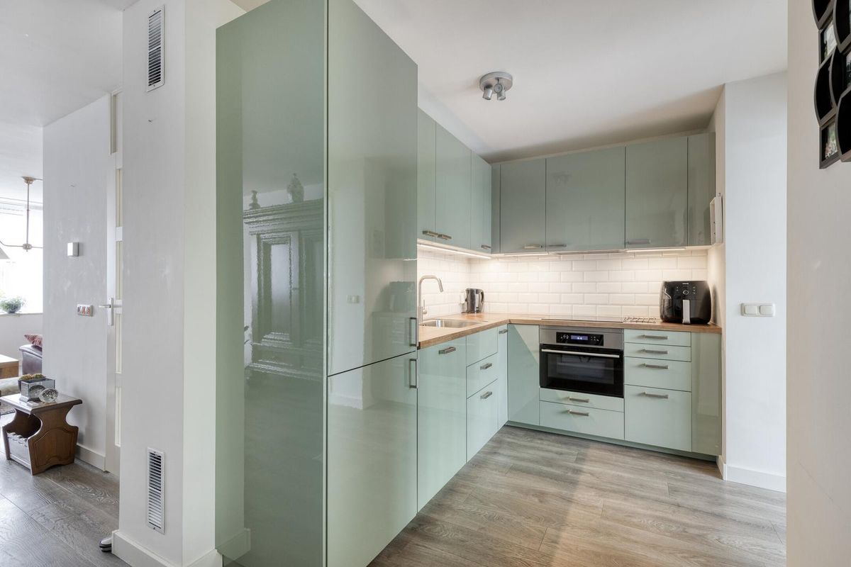 De lichte woonkamer heeft een prettige U-vorm en is voorzien van een airconditioning voor extra comfort in elk seizoen. Aan de achterzijde bevindt zich de moderne keuken (2019) in hoekopstelling, voorzien van diverse inbouwapparatuur: een koel-/vriescombinatie, rvs-spoelbak, vaatwasser en oven.