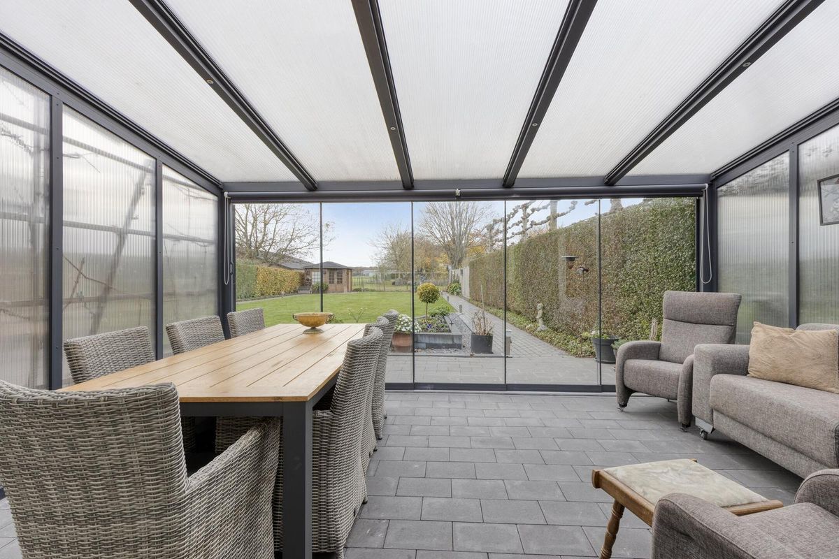 De tuin is smaakvol ingericht met sierbestrating, meerdere terrassen, siergrind, tuinverlichting, een gazon met robotgrasmaaier, verzorgde borders en een beregeningsinstallatie met eigen grondwaterput (ca. 12 meter diep). Dankzij de gunstige ligging aan de rand van het dorp geniet je hier van een prachtig uitzicht – een unieke combinatie van rust, ruimte en modern gemak.